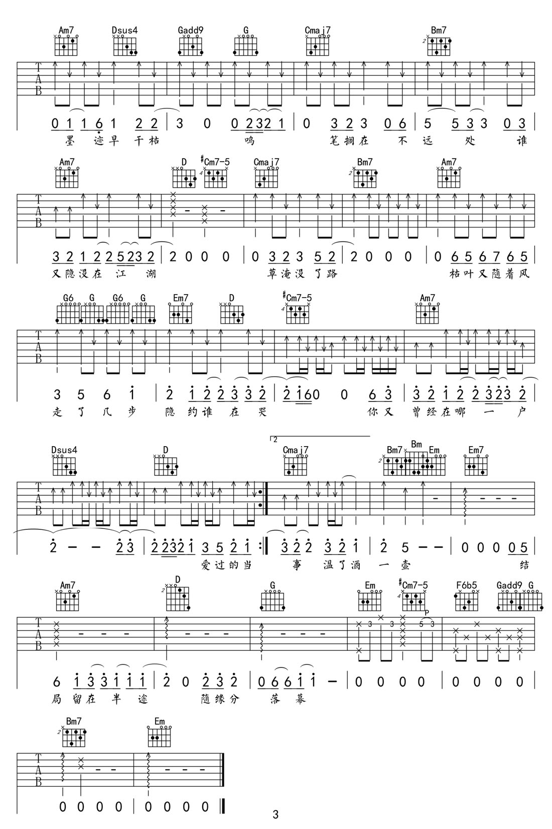 陈江河苏江水吉他谱,歌曲原调为G调,此版本的曲谱来源于@革命吉他,为4/4拍的节奏,按G调指法编配,共3张高清吉他谱,变调夹不夹为原歌曲的调式,演唱时可按个人音域选择合适的变调夹位置。 -