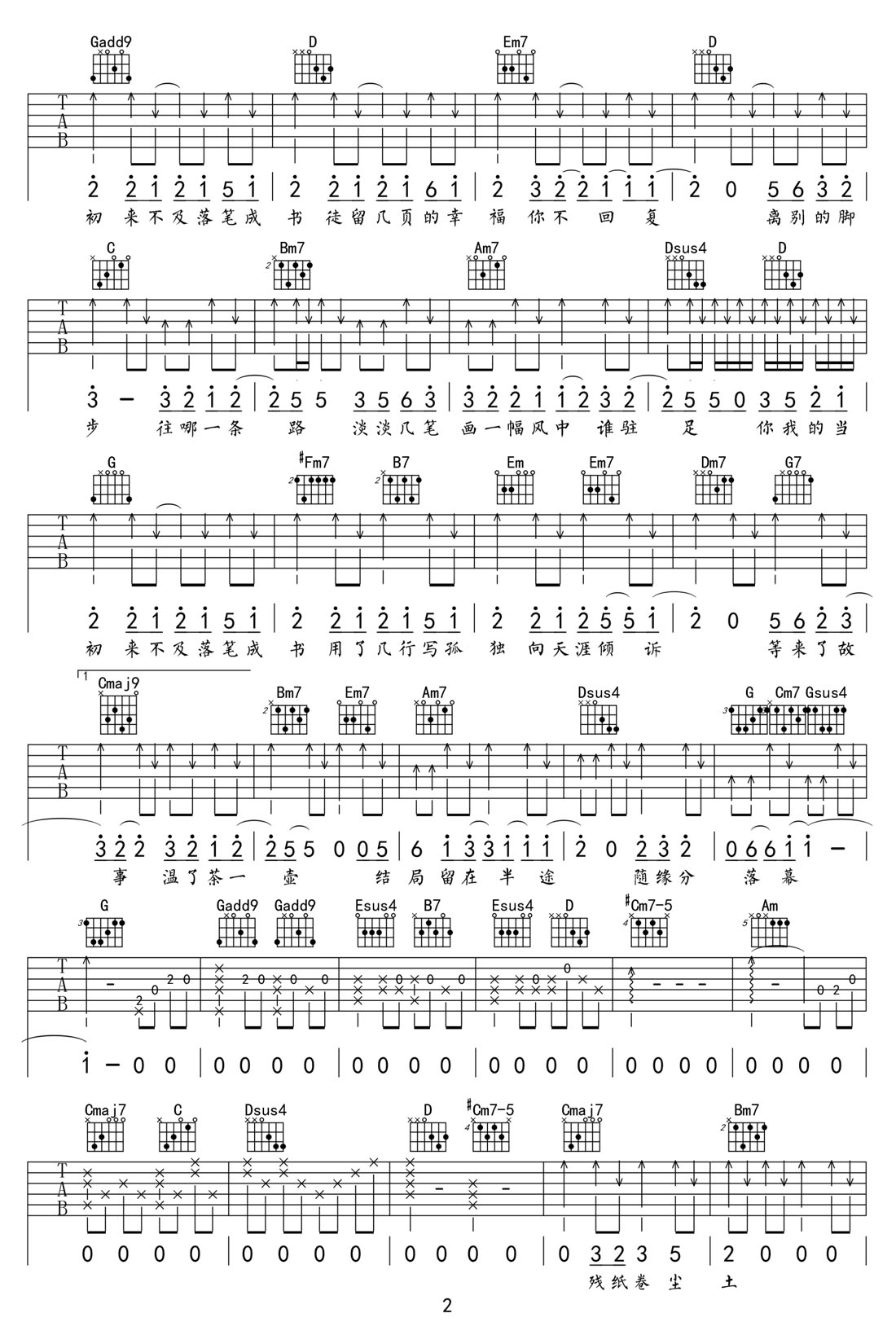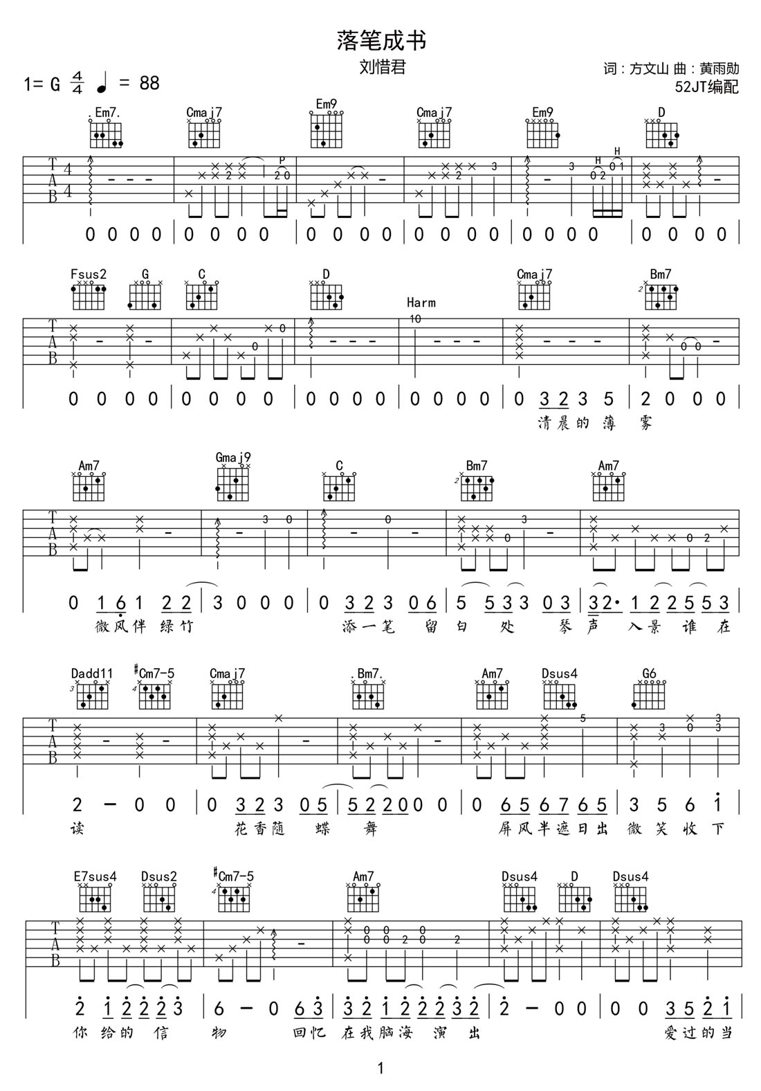 落笔成书吉他谱_刘惜君_G调原版弹唱谱_图片六线谱