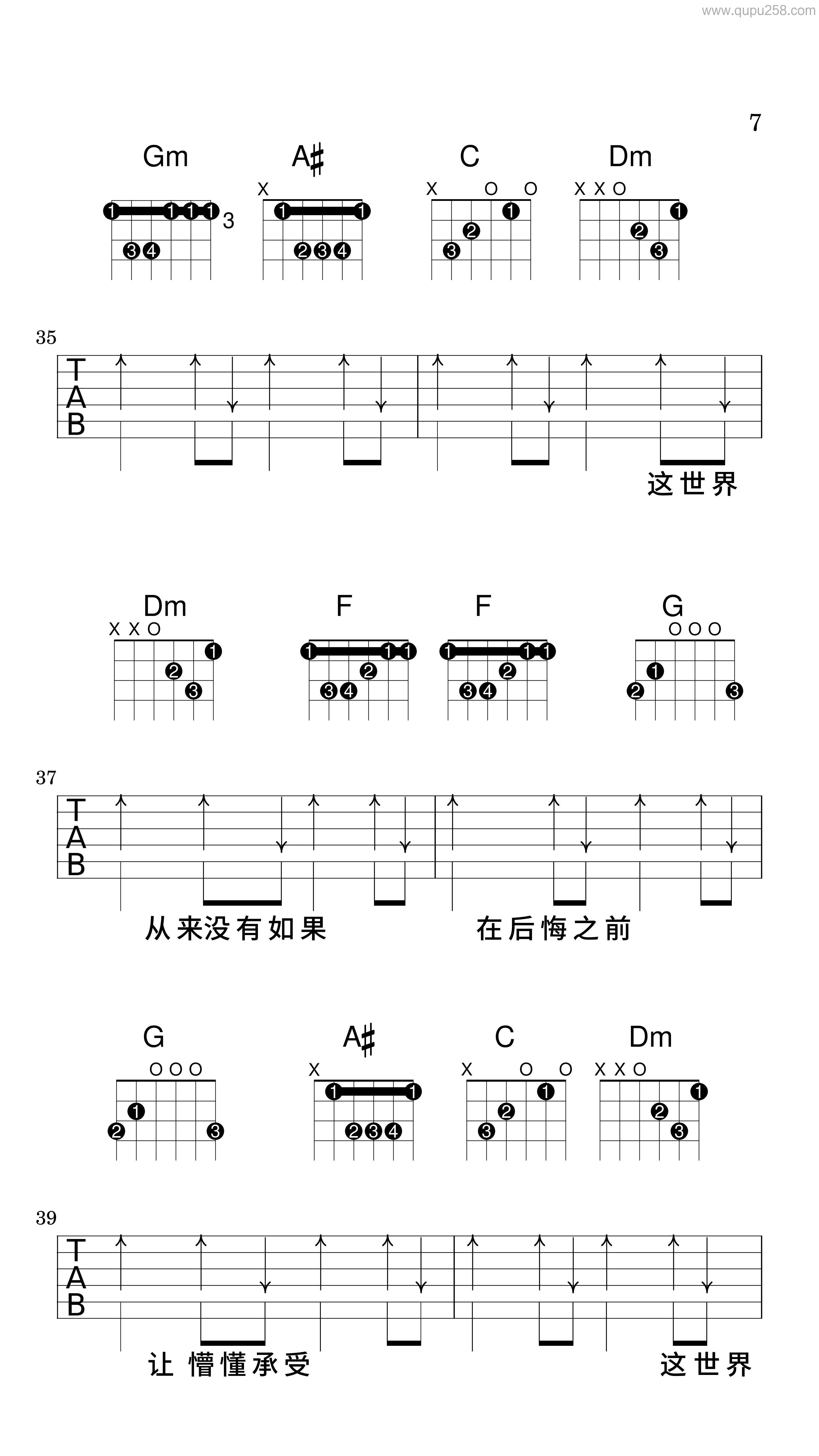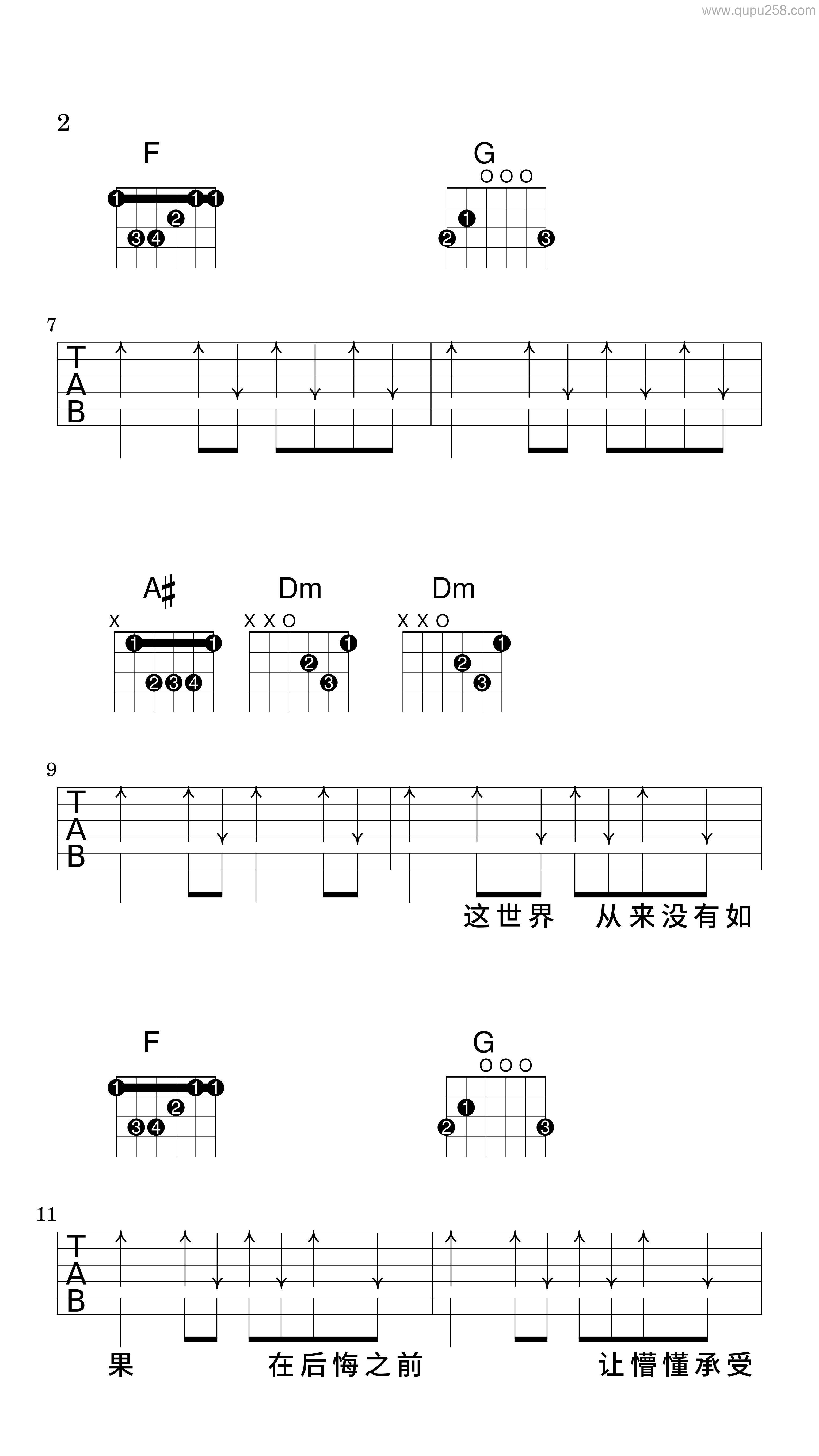 友情提示吉他谱_薛之谦_A调原版弹唱谱_图片六…
