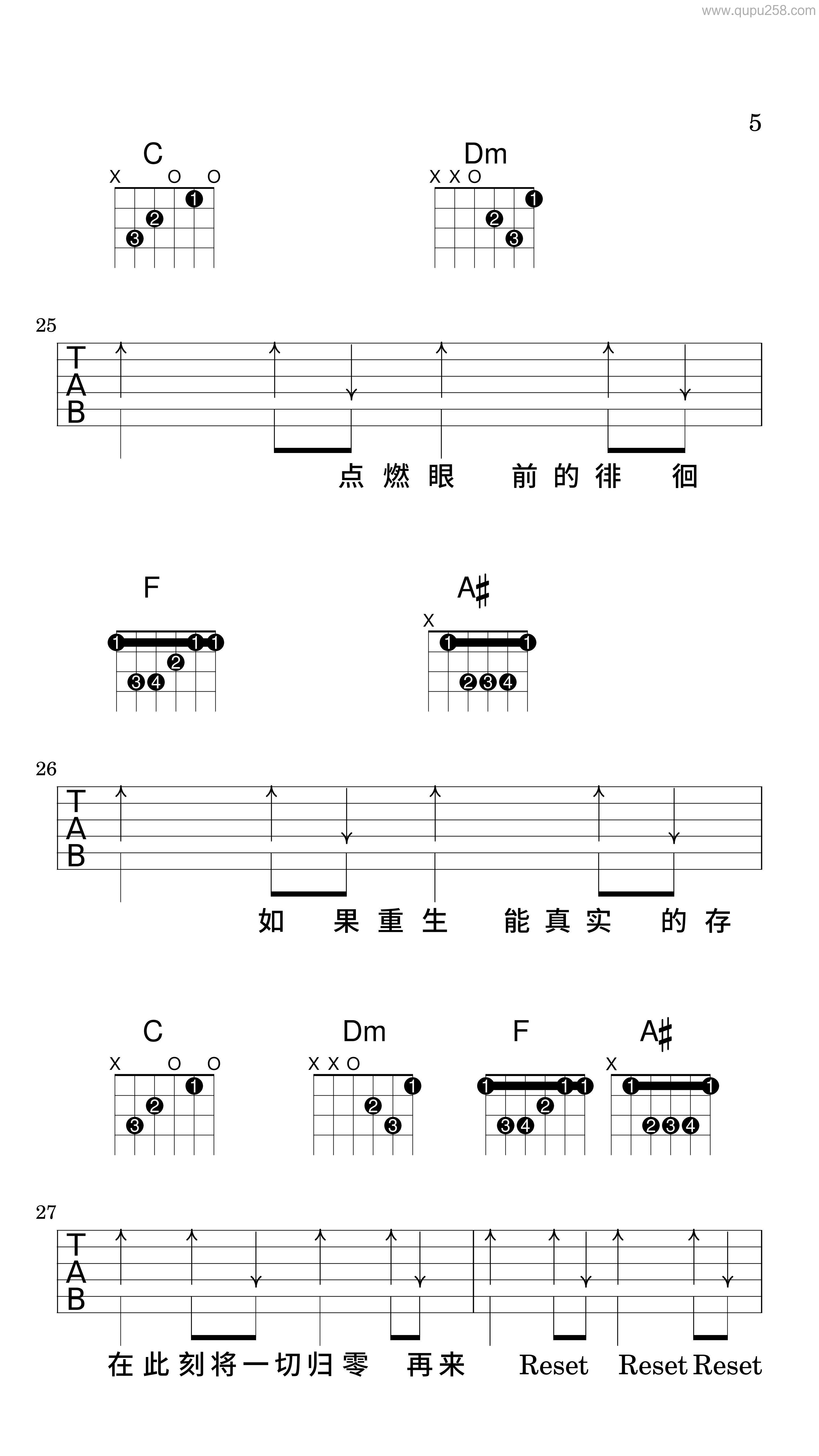 库里之歌吉他谱_龙奔_C调拍弦版弹唱谱_图片六…