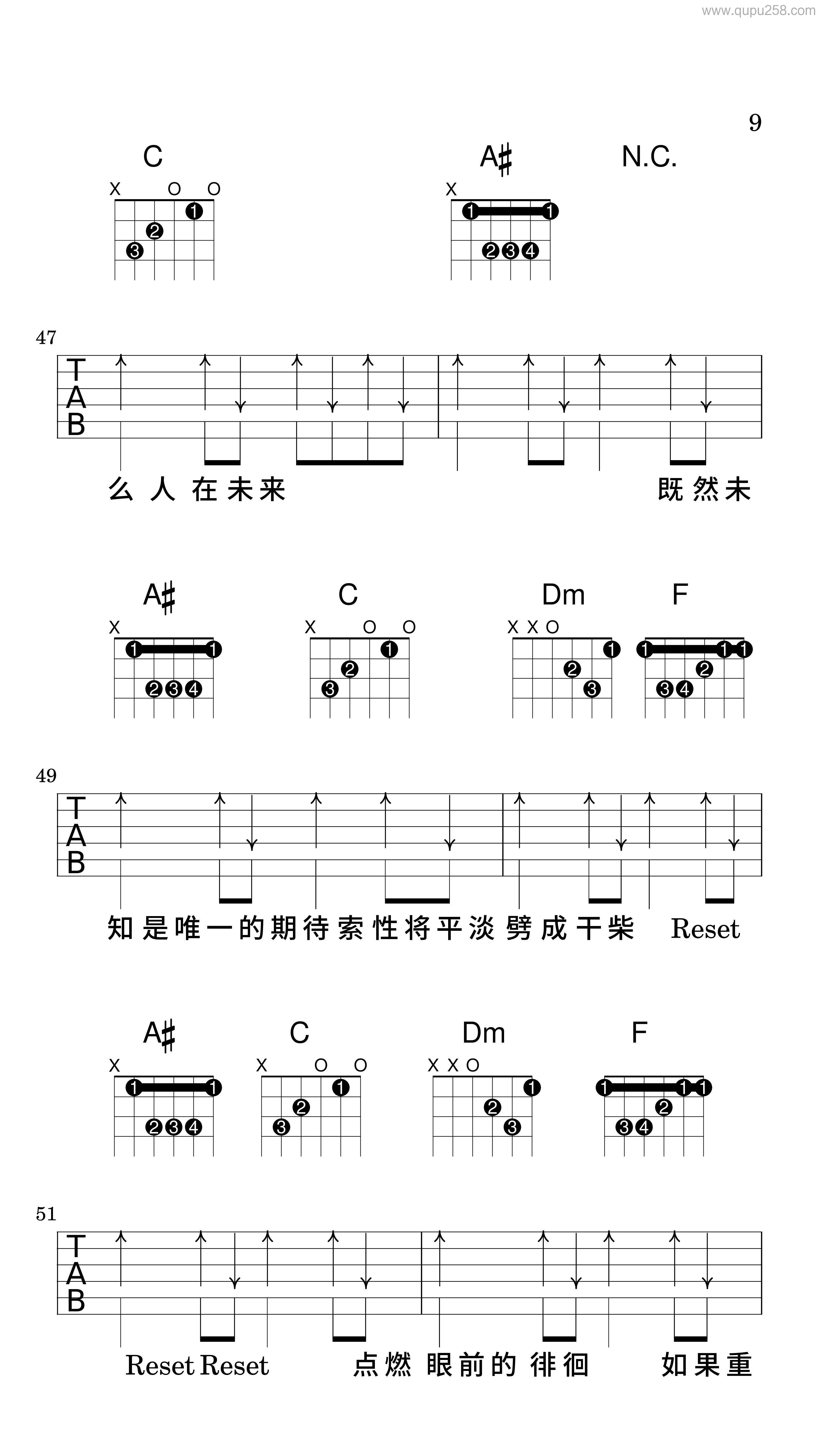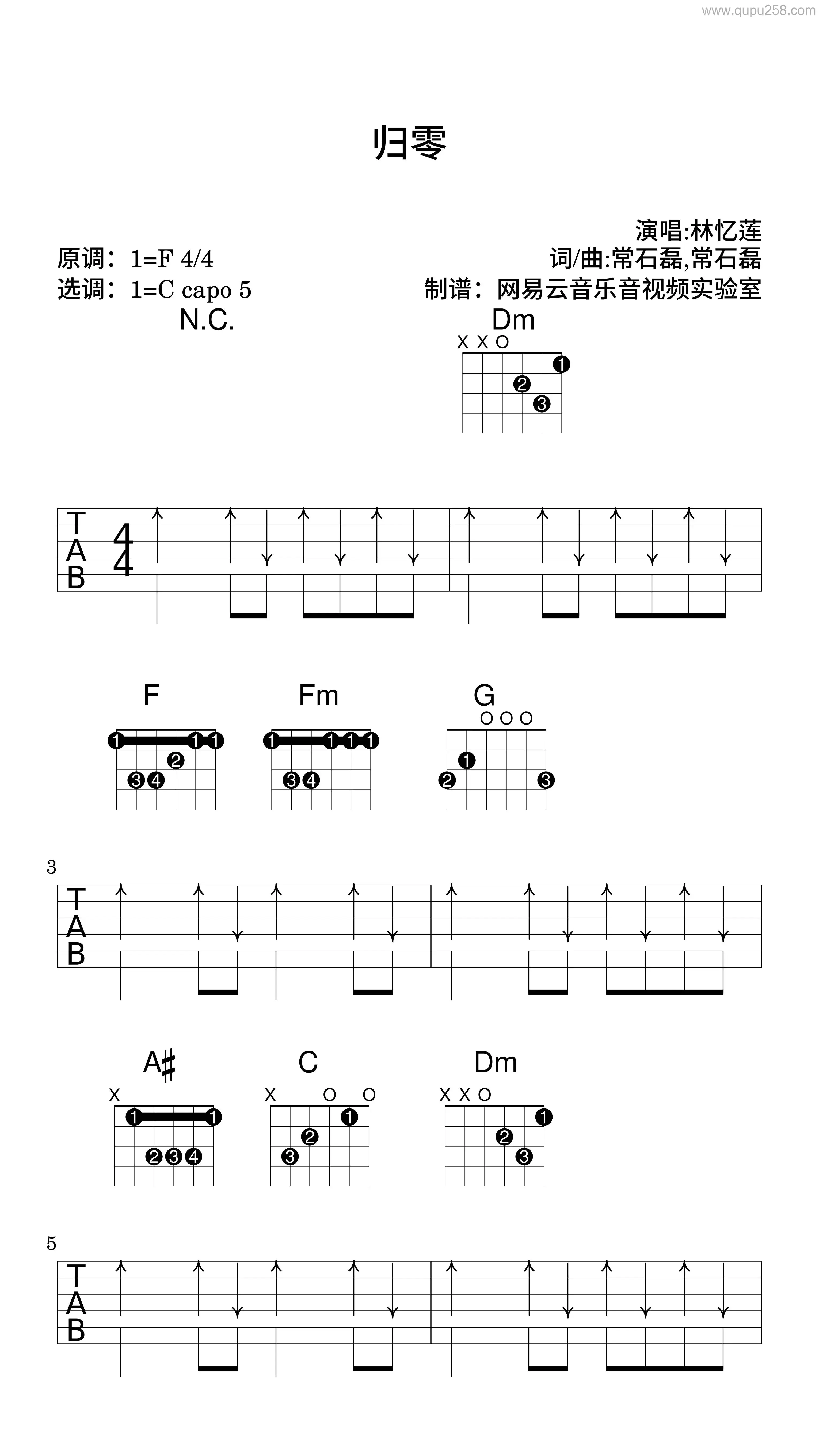 归零吉他谱_林忆莲_C调扫弦版弹唱谱_图片六线谱
