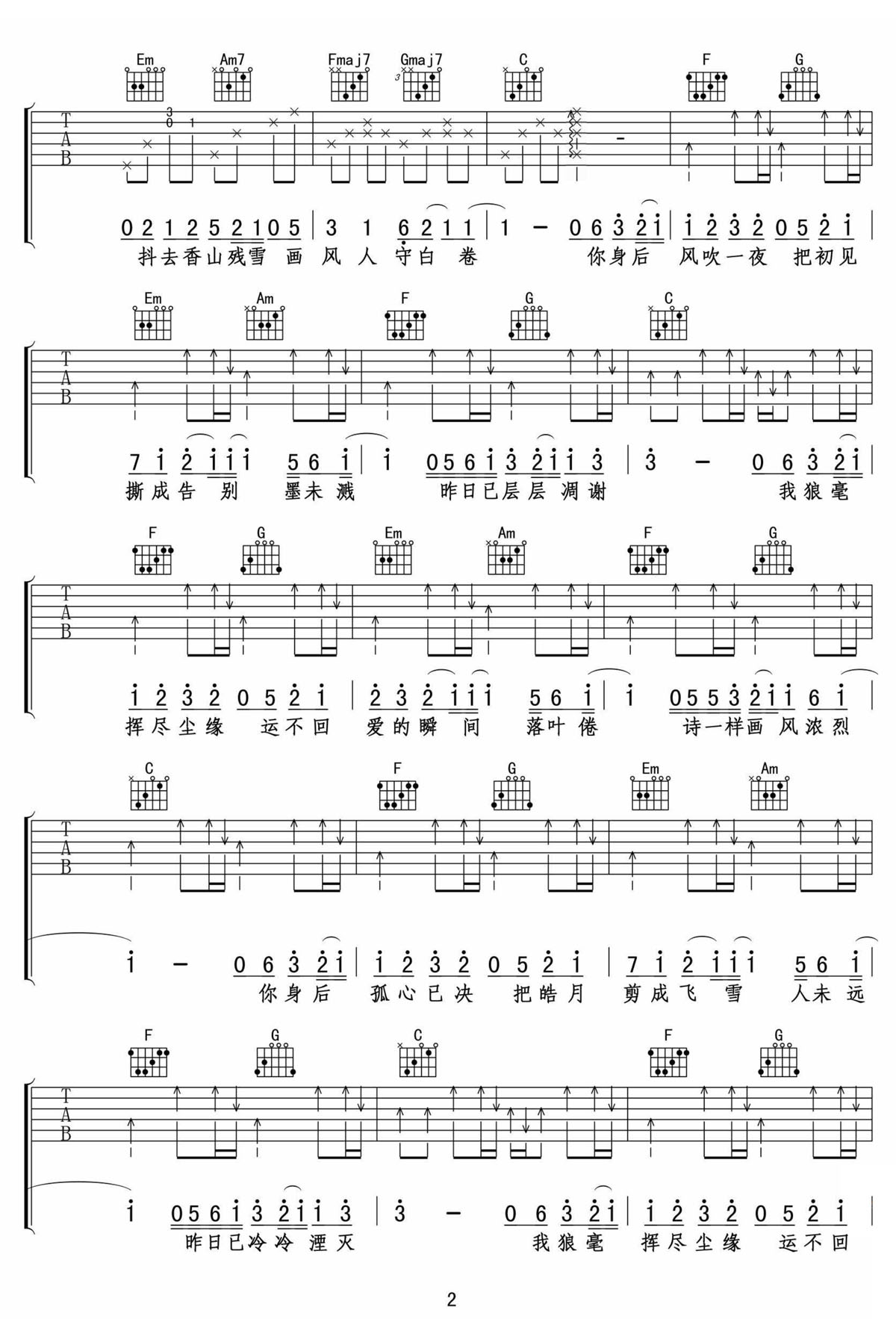画风吉他谱_后弦_C调原版弹唱谱_图片六线谱