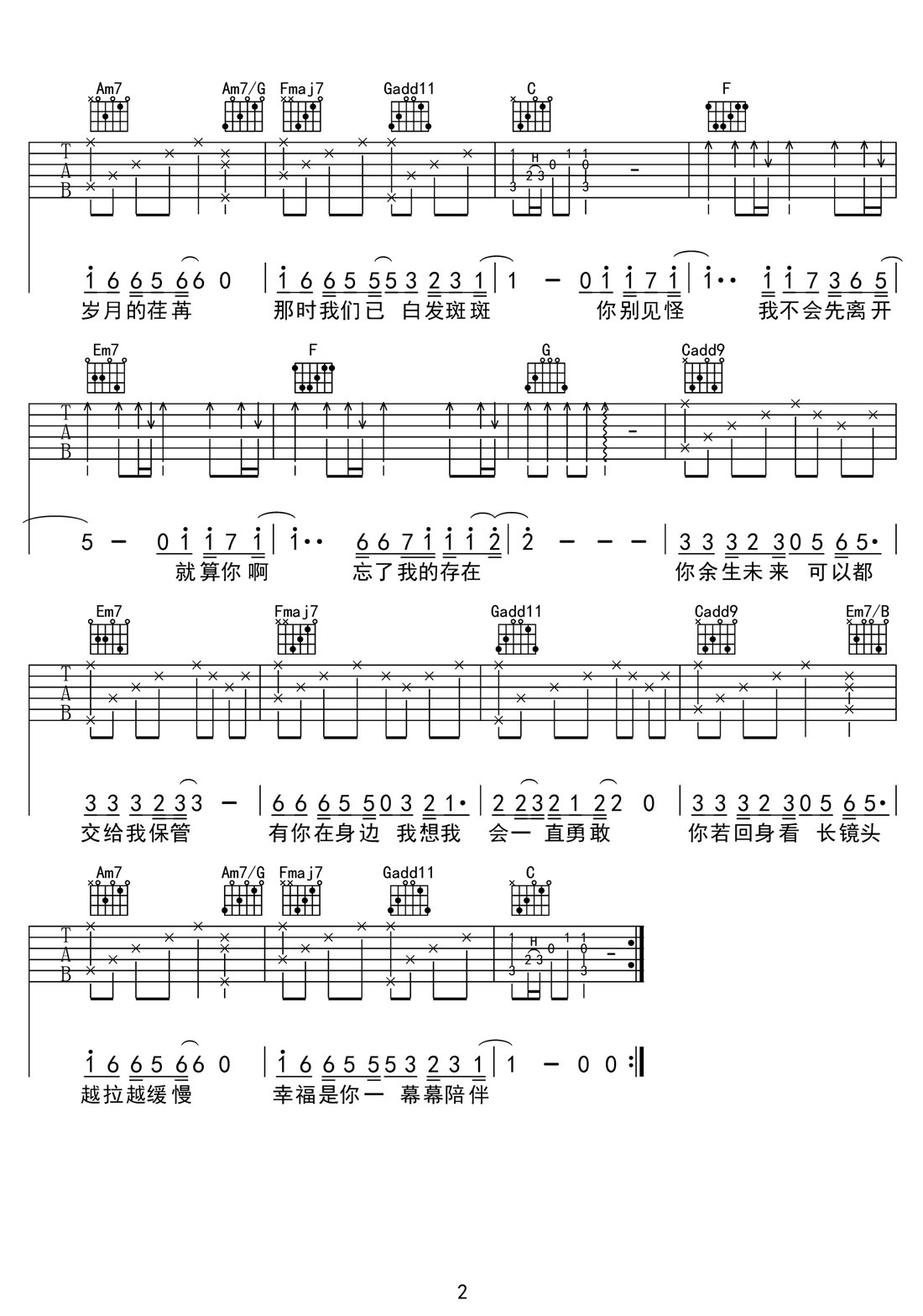 人生路漫漫吉他谱,歌曲原调为F调,此版本的曲谱来源于@吉他大师,为4/4拍的节奏,按C调指法编配,共2张高清吉他谱,变调夹5品为原歌曲的调式,演唱时可按个人音域选择合适的变调夹位置。