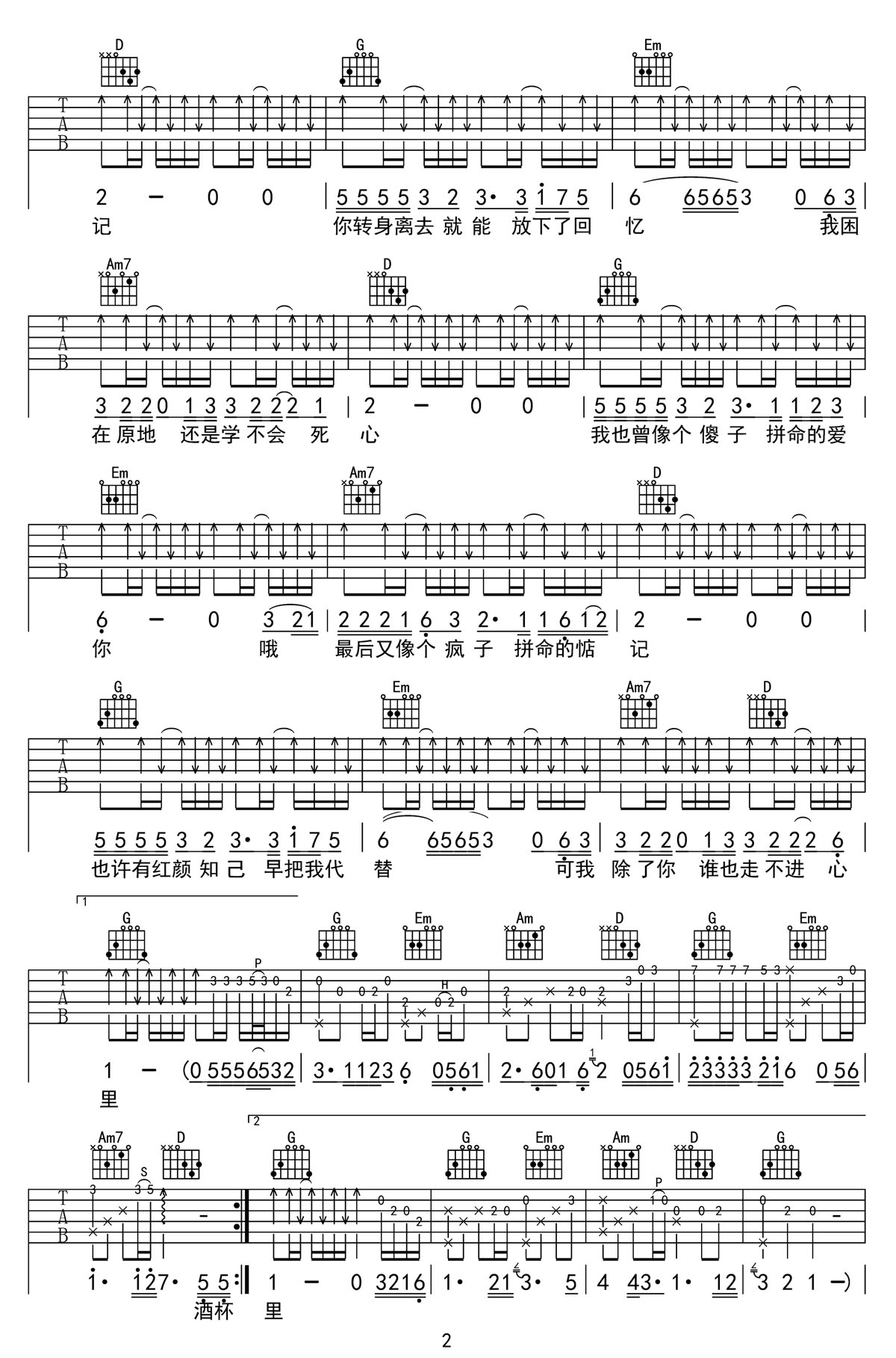 我曾像傻子一样爱你吉他谱_老板_G调原版弹唱谱_图片六线谱