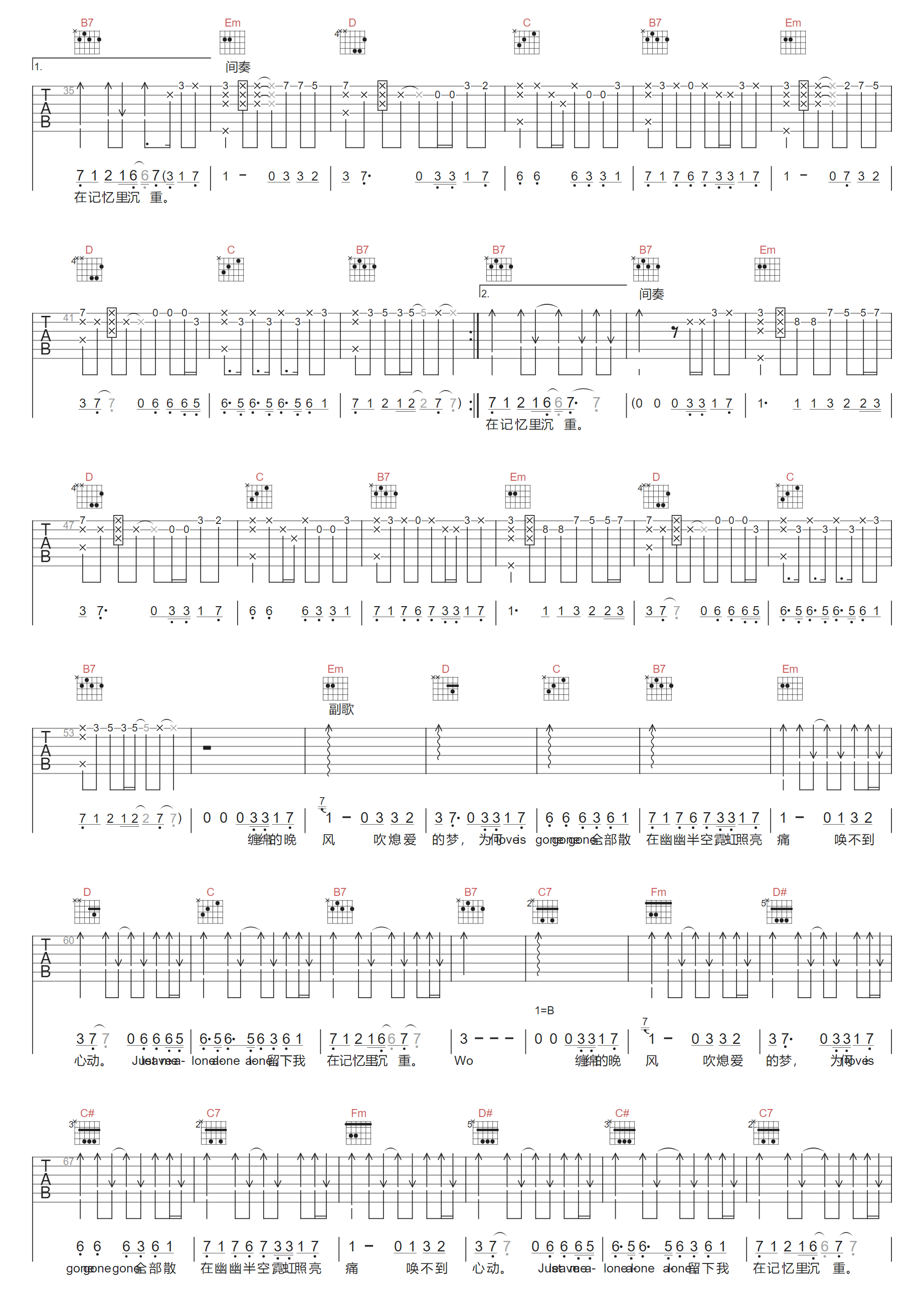 随风而去吉他谱,歌曲原调为G调,此版本的曲谱来源于@天音吉他,为4/4拍的节奏,按G调指法编配,共3张高清吉他谱,变调夹不夹为原歌曲的调式,演唱时可按个人音域选择合适的变调夹位置。 歌曲由伍佰与乐队China Blue共同演绎,音乐风格融合了摇滚元素,表达了爱情逝… -
