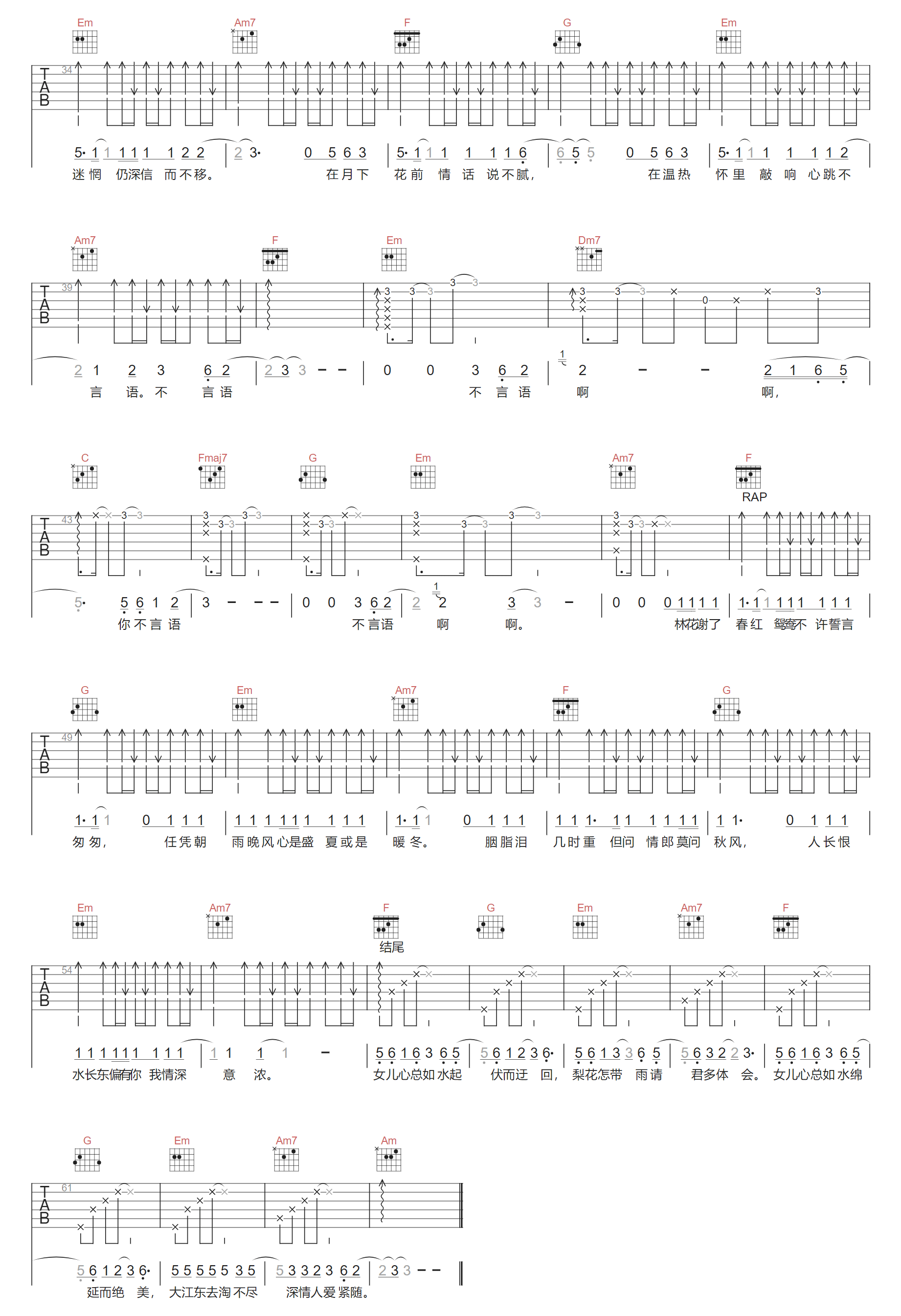 陈江河苏江水吉他谱_南青乐队_G调扫弦弹唱谱_…