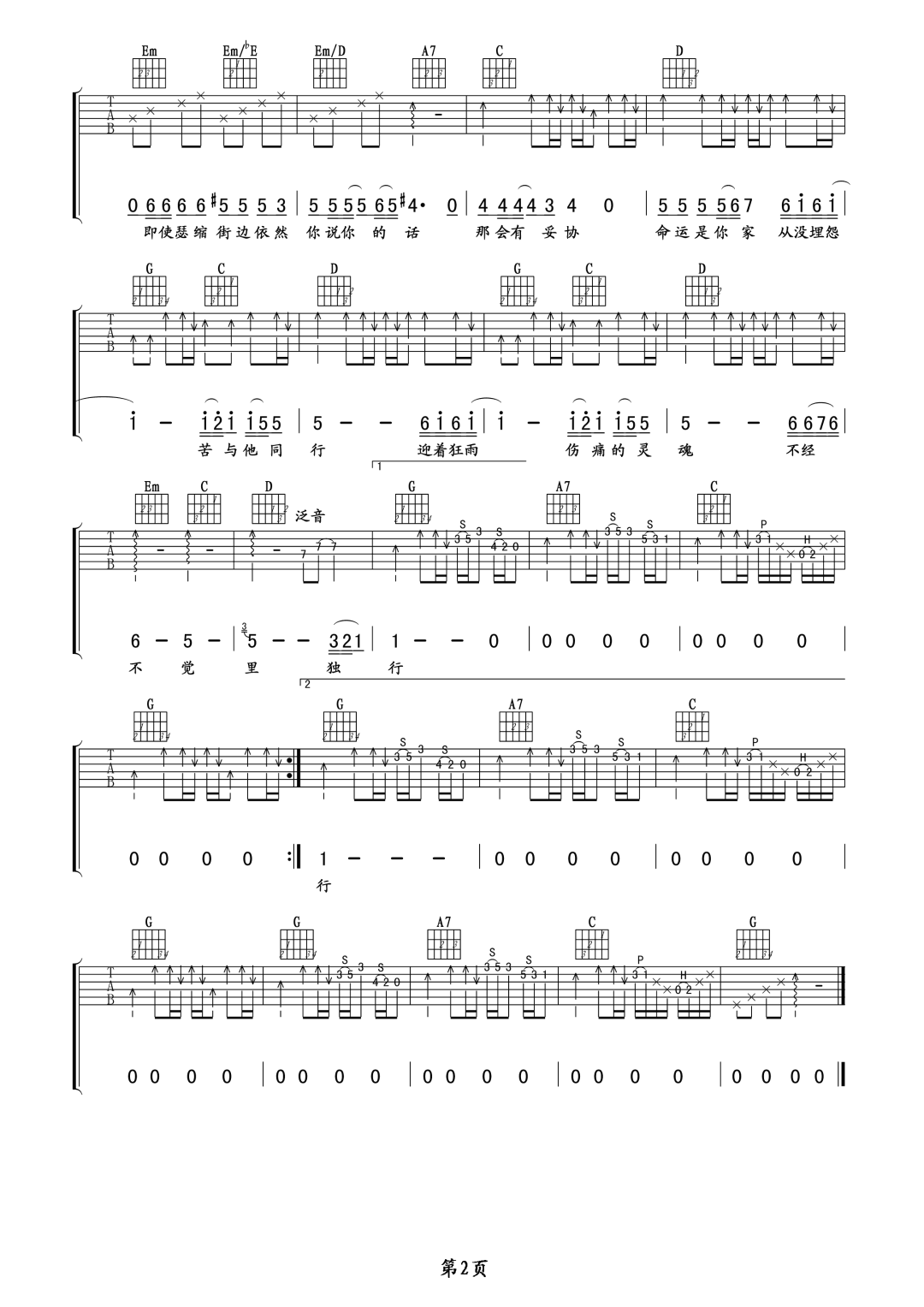 随风而去吉他谱_伍佰_G调扫弦版弹唱谱_图片六…