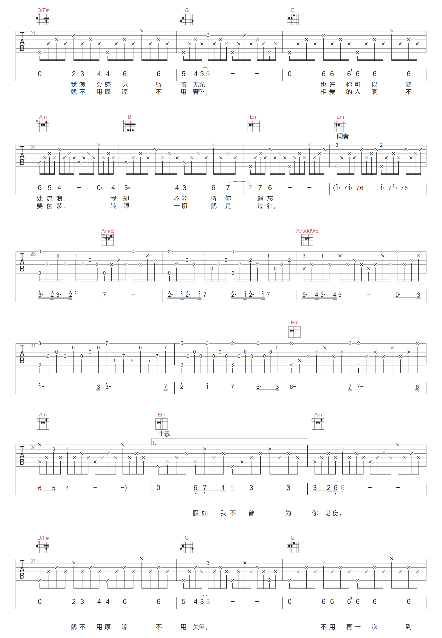 以后吉他谱,歌曲原调为A调,此版本的曲谱来源于@拉拉guitar,为4/4拍的节奏,按G调指法编配,共2张高清吉他谱,变调夹2品为原歌曲的调式,演唱时可按个人音域选择合适的变调夹位置。 -
