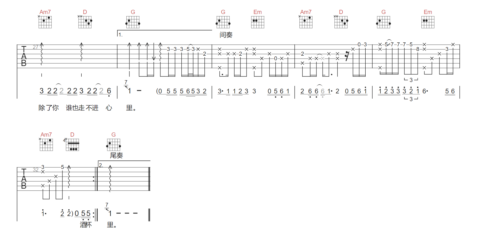 不醉不会吉他谱_田馥甄_G调原版弹唱谱_图片六…