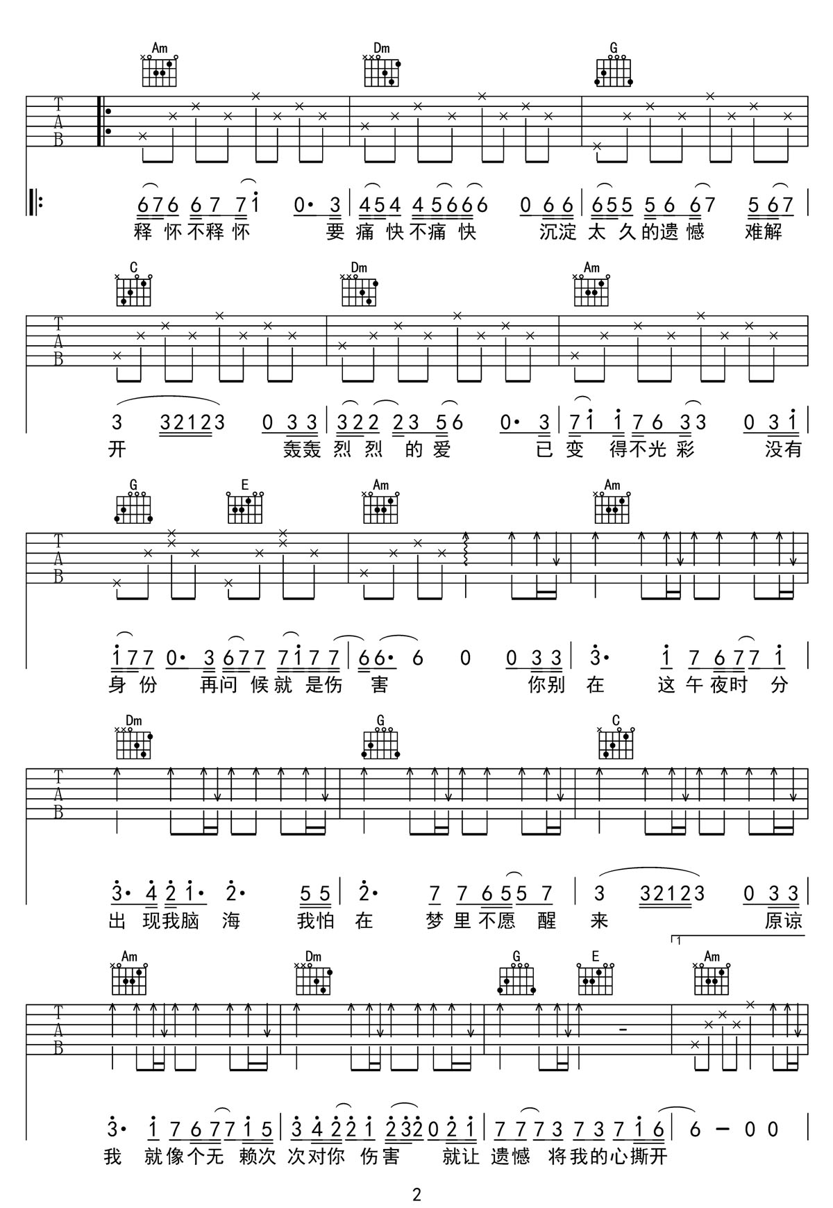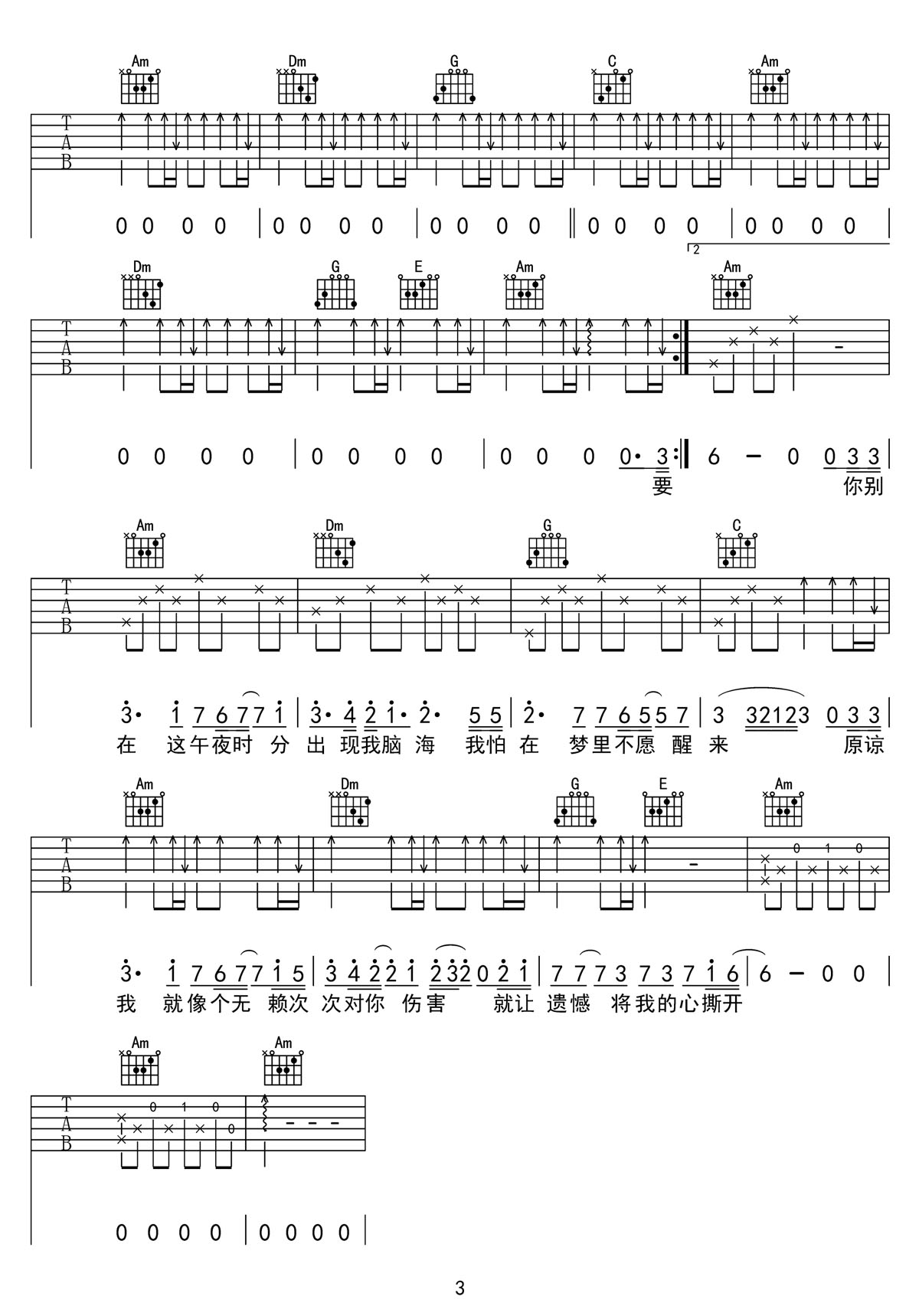 心碎的梦吉他谱_卡带森林_C调原版弹唱谱_图片六线谱