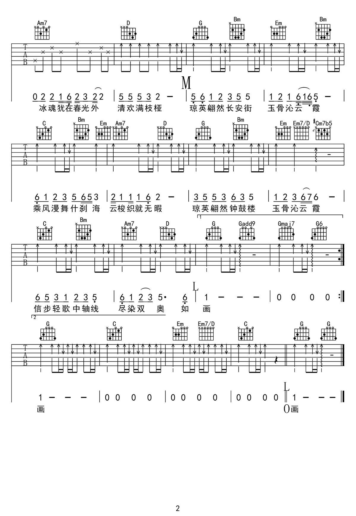 画风吉他谱,歌曲原调为#C调,此版本的曲谱来源于@狂生兄,为4/4拍的节奏,按C调指法编配,共3张高清吉他谱,变调夹1品为原歌曲的调式,演唱时可按个人音域选择合适的变调夹位置。 全曲采用念诗的节奏和赋比兴的诗词结构来演绎,听完歌曲仿佛是念完一首诗词。整首歌…