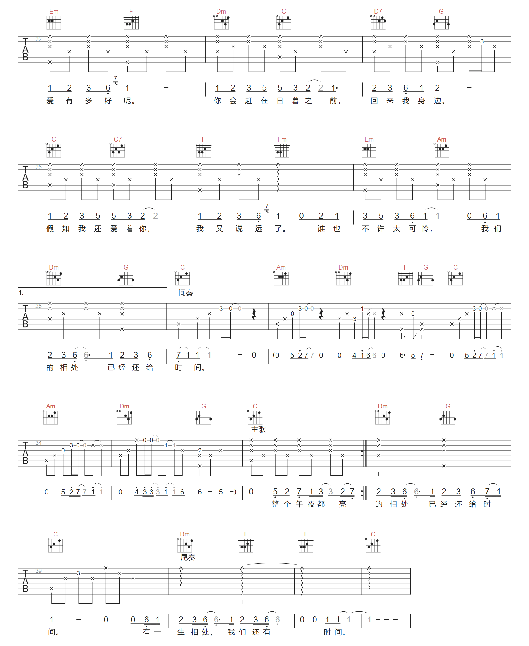 假如我们还爱着吉他谱_单依纯_C调原版弹唱谱_图片六线谱