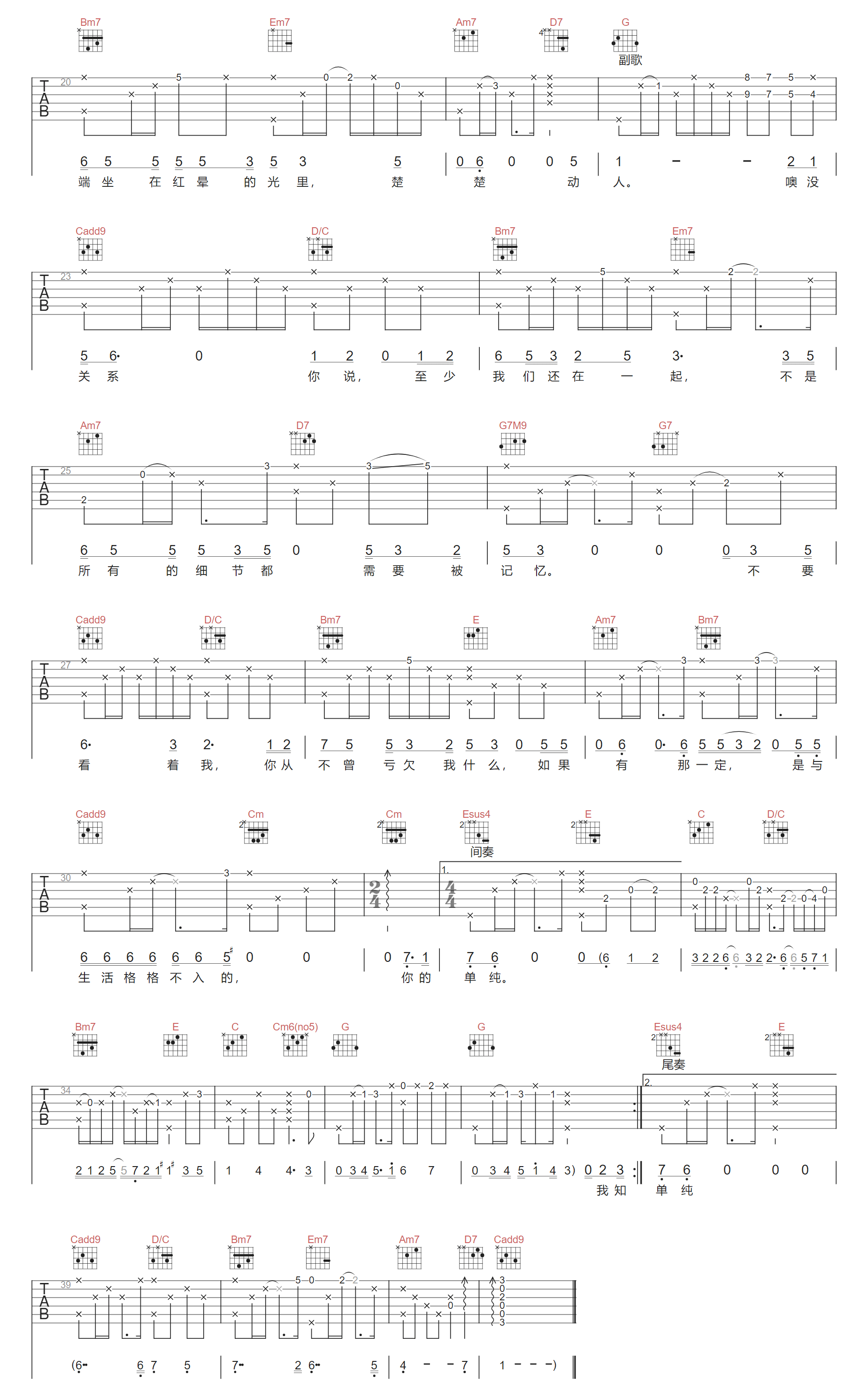绽放吉他谱,歌曲原调为A调,此版本的曲谱来源于@一颗加菲,为4/4拍的节奏,按G调指法编配,共2张高清吉他谱,变调夹2品为原歌曲的调式,演唱时可按个人音域选择合适的变调夹位置。 郑润泽以个人情感经历为创作灵感,历时三个月完成词曲创作。作品延续其擅长的抒情风… -