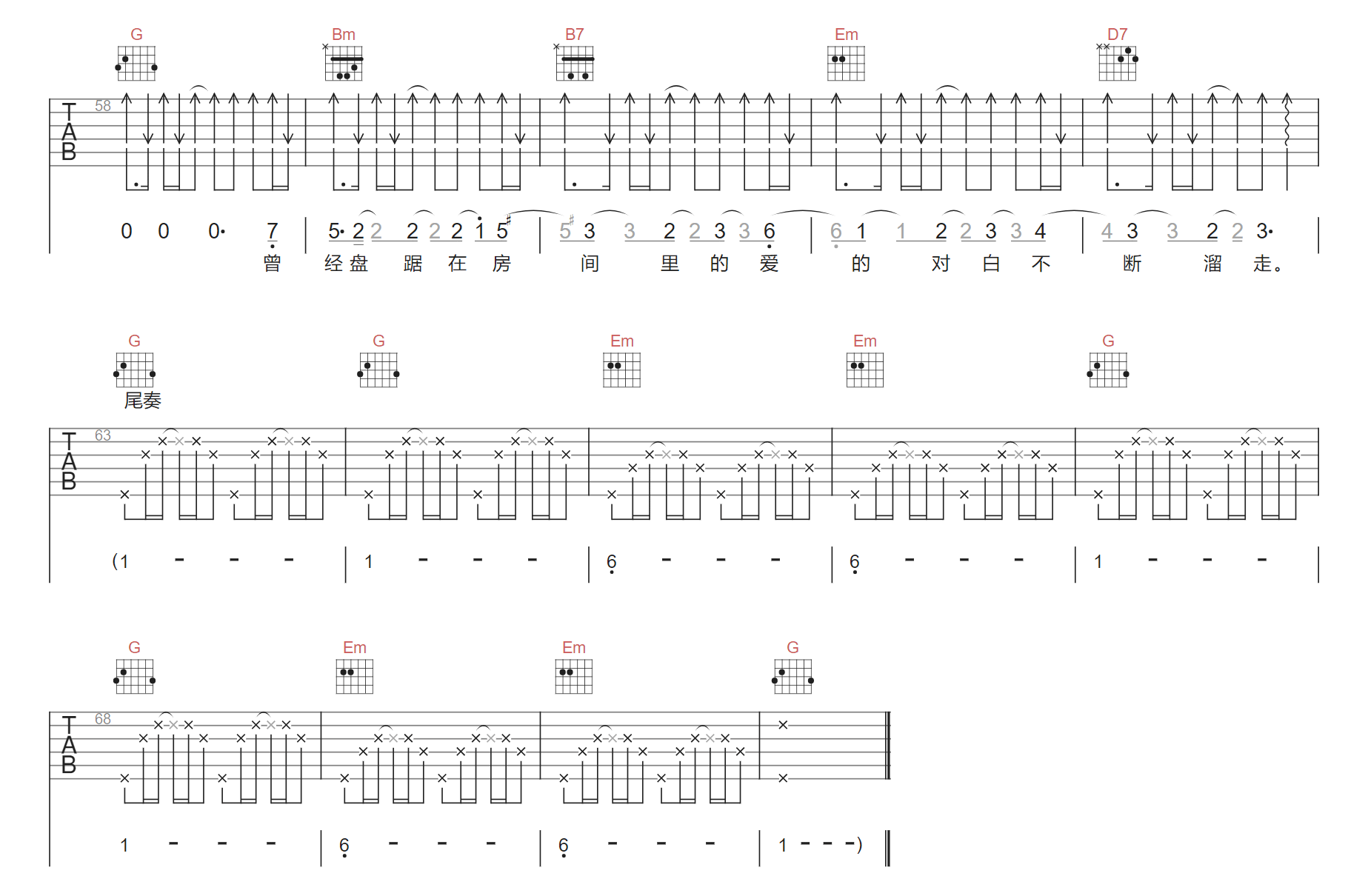 行走的鱼吉他谱_徐佳莹_G调原版弹唱谱_图片六…