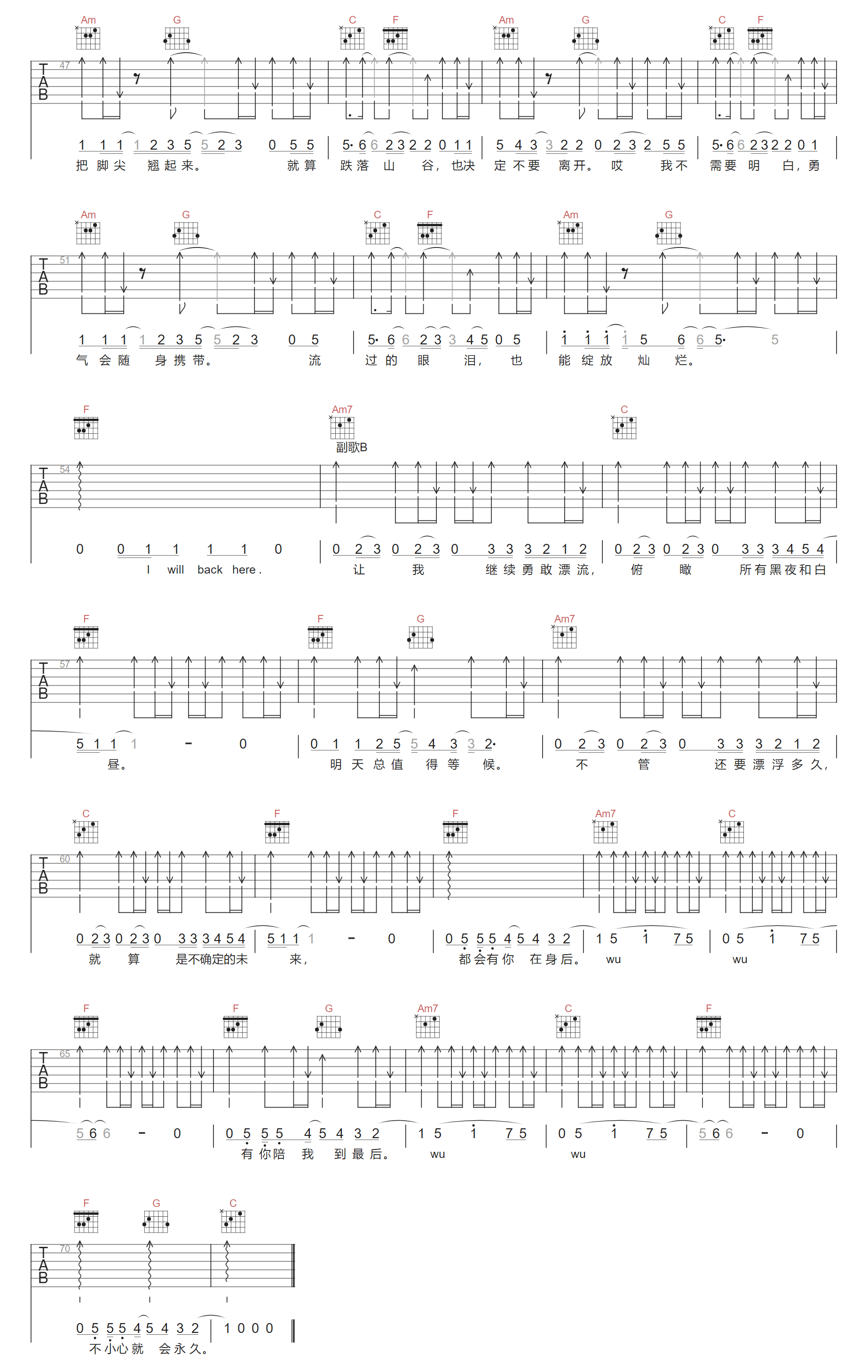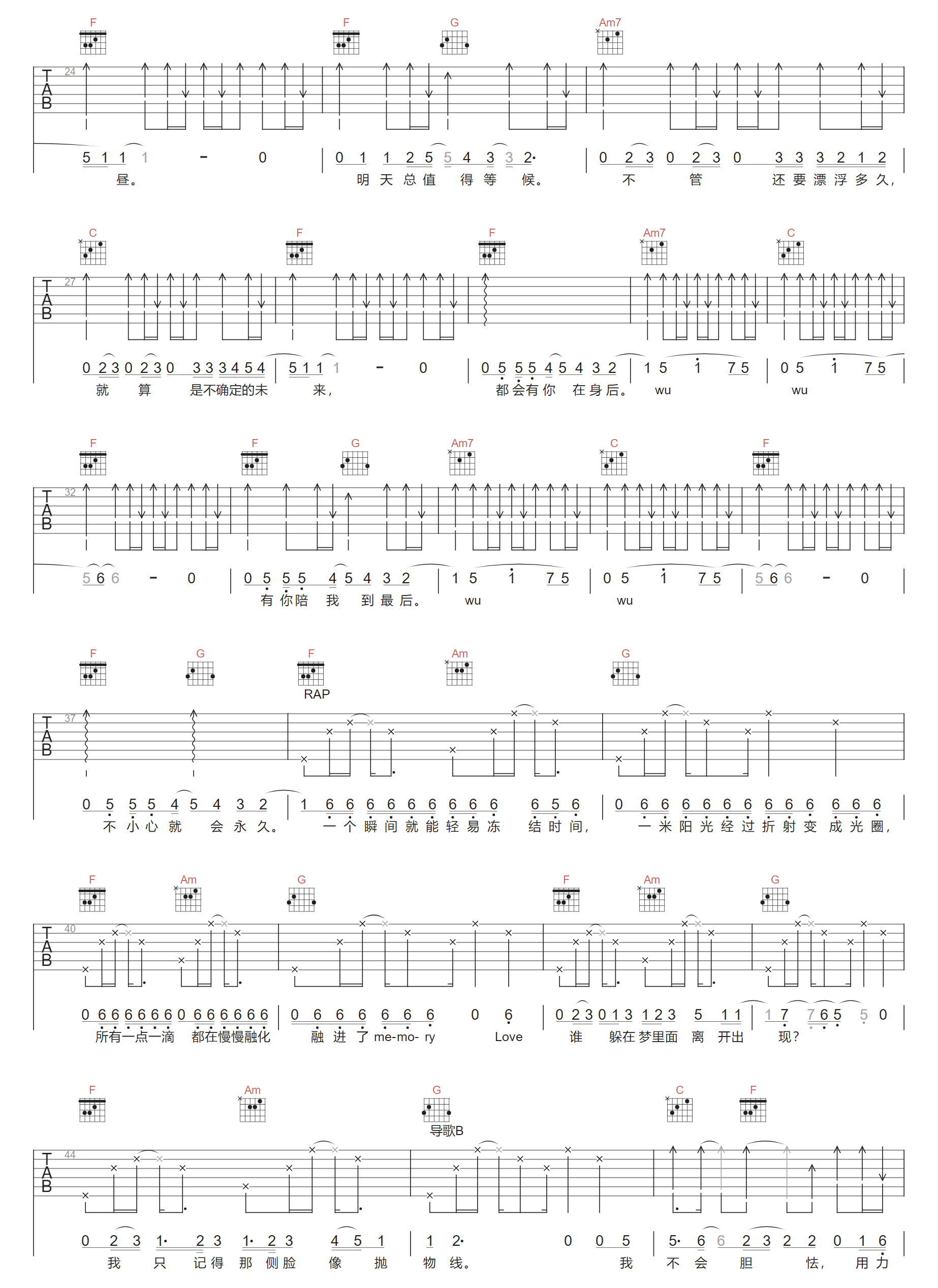 南滨路没有尽头吉他谱,歌曲原调为C调,此版本的曲谱来源于@郑好,为4/4拍的节奏,按C调指法编配,共3张高清吉他谱,变调夹不夹为原歌曲的调式,演唱时可按个人音域选择合适的变调夹位置。 -