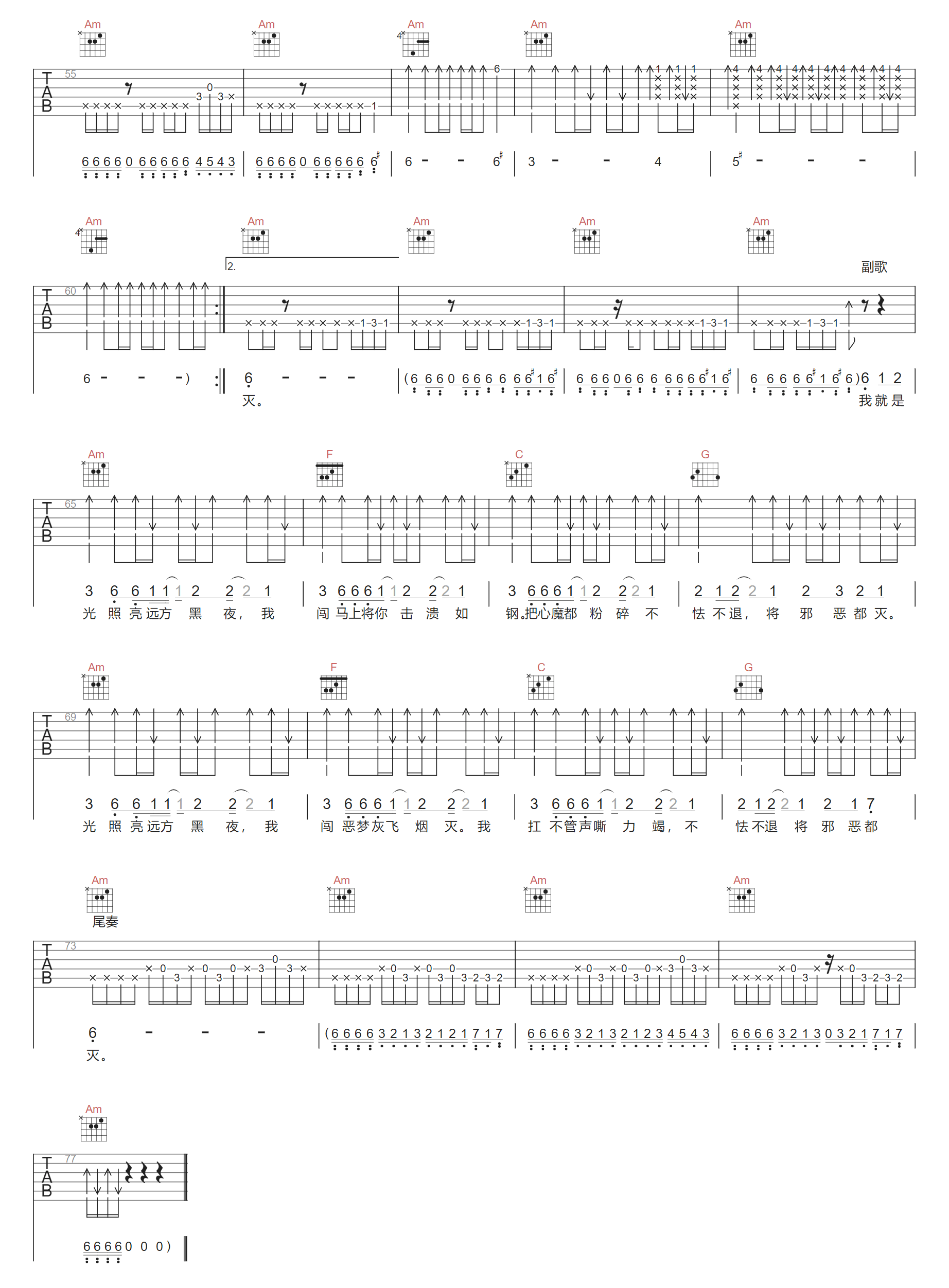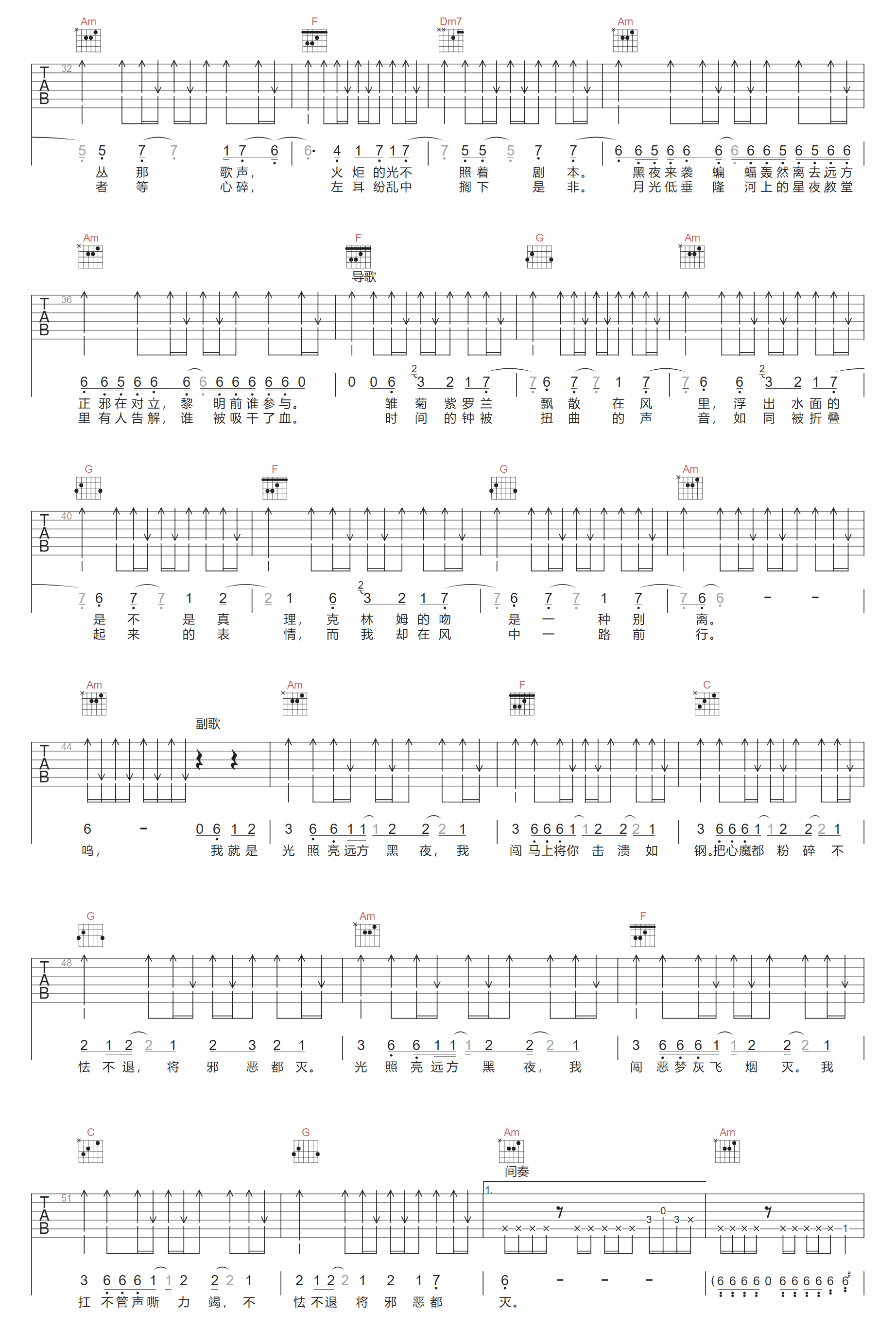 天空总是那么黑吉他谱,歌曲原调为A调,此版本的曲谱来源于@Equater,为4/4拍的节奏,按G调指法编配,共4张高清吉他谱,变调夹2品为原歌曲的调式,演唱时可按个人音域选择合适的变调夹位置。 歌曲以失恋心理为主线,通过一些重复的意象营造压抑、迷茫的氛围。歌词聚… -
