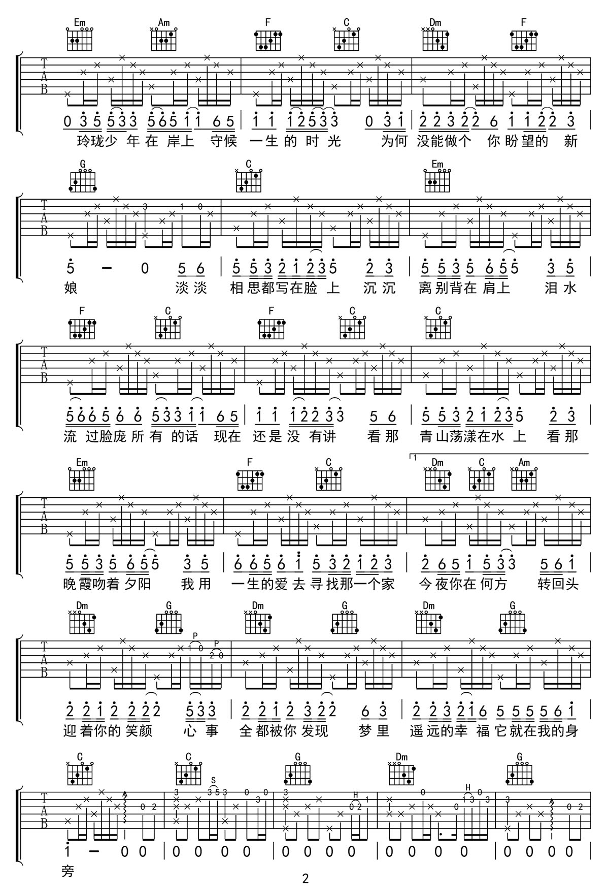 南滨路没有尽头吉他谱,歌曲原调为C调,此版本的曲谱来源于@郑好,为4/4拍的节奏,按C调指法编配,共3张高清吉他谱,变调夹不夹为原歌曲的调式,演唱时可按个人音域选择合适的变调夹位置。 -