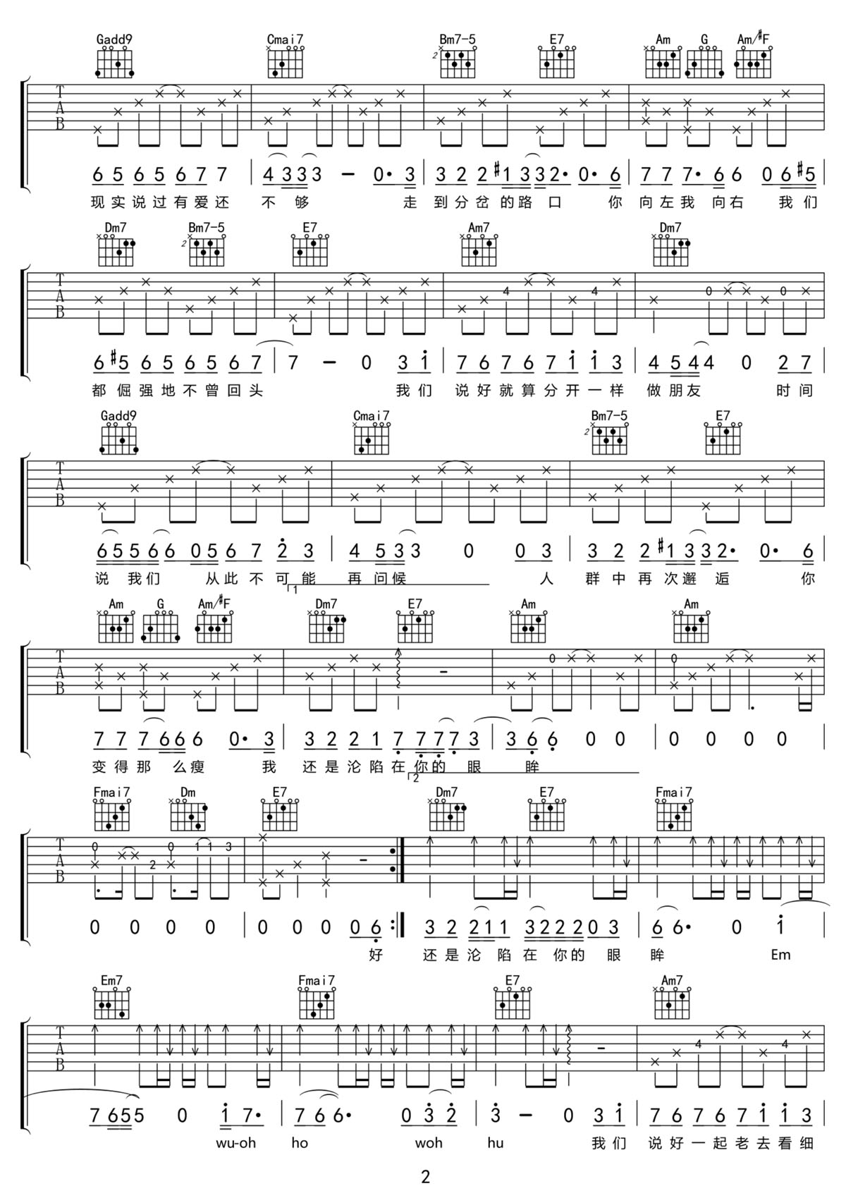 我们说好的吉他谱_胜屿_C调弹唱谱_图片六线谱