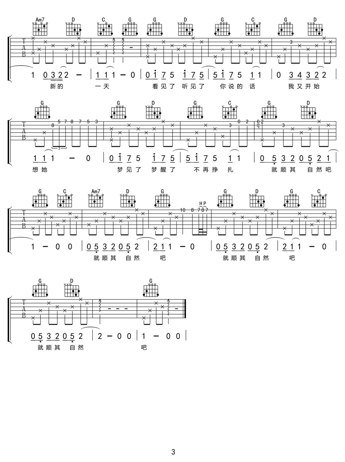 自然醒吉他谱,歌曲原调为#C调,此版本的曲谱来源于@农村教授,为4/4拍的节奏,按C调指法编配,共4张高清吉他谱,变调夹1品为原歌曲的调式,演唱时可按个人音域选择合适的变调夹位置。 这首歌是首浓烈的硬式摇滚音乐作品,深刻地反映了在快速发展的社会里,人们忙着… -