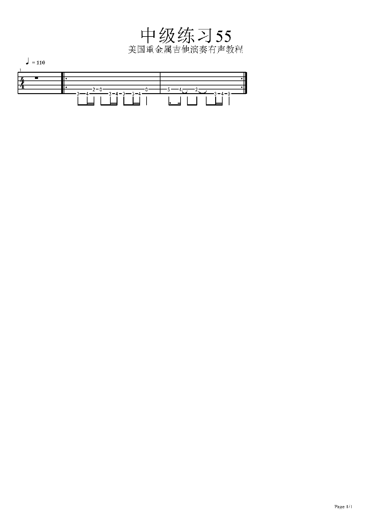 电吉他基本功练习曲谱《中级练习》_电吉他乐谱