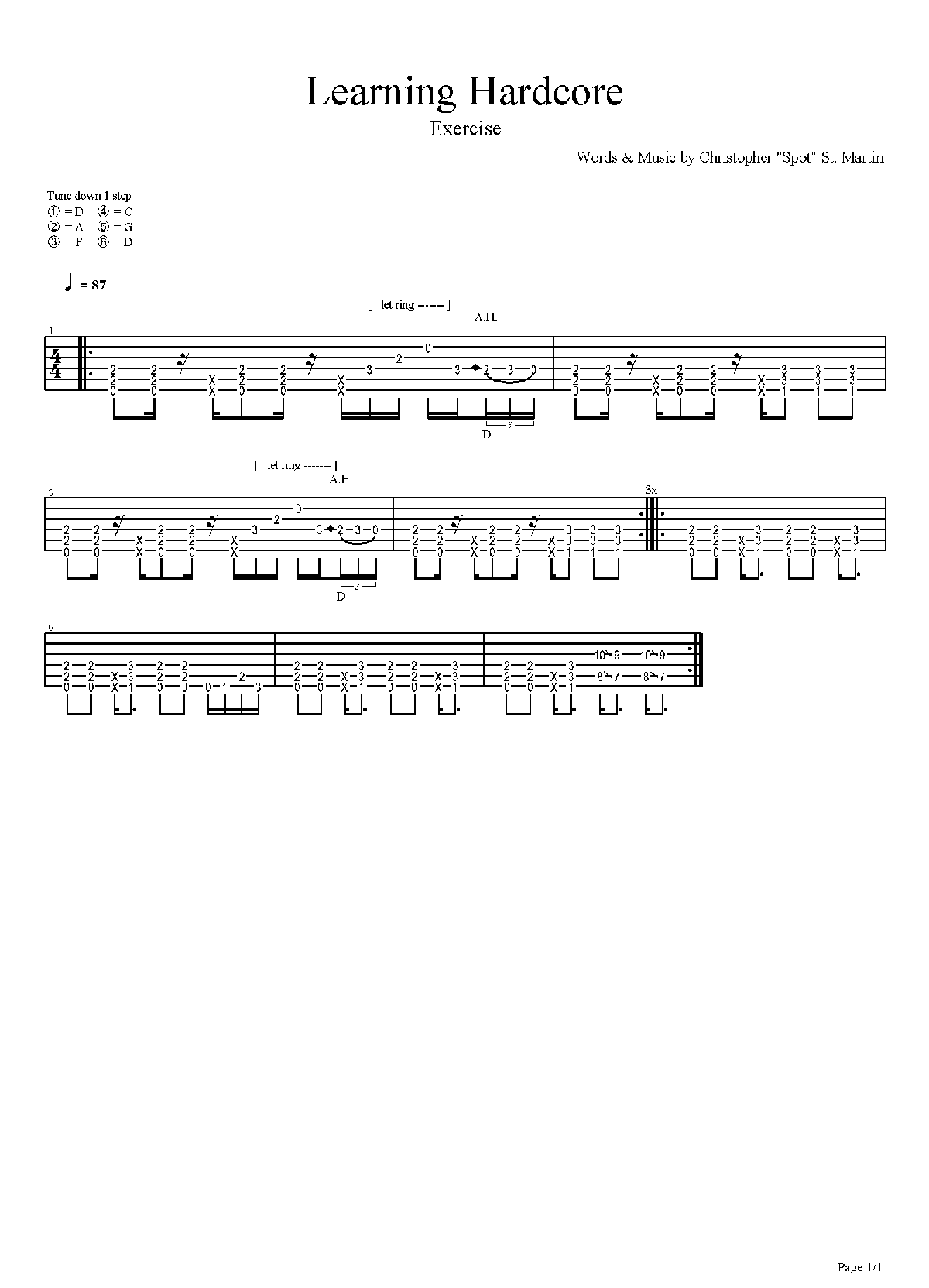 电吉他练习谱《Hardcore - Learning Hardcore》_电吉他乐谱