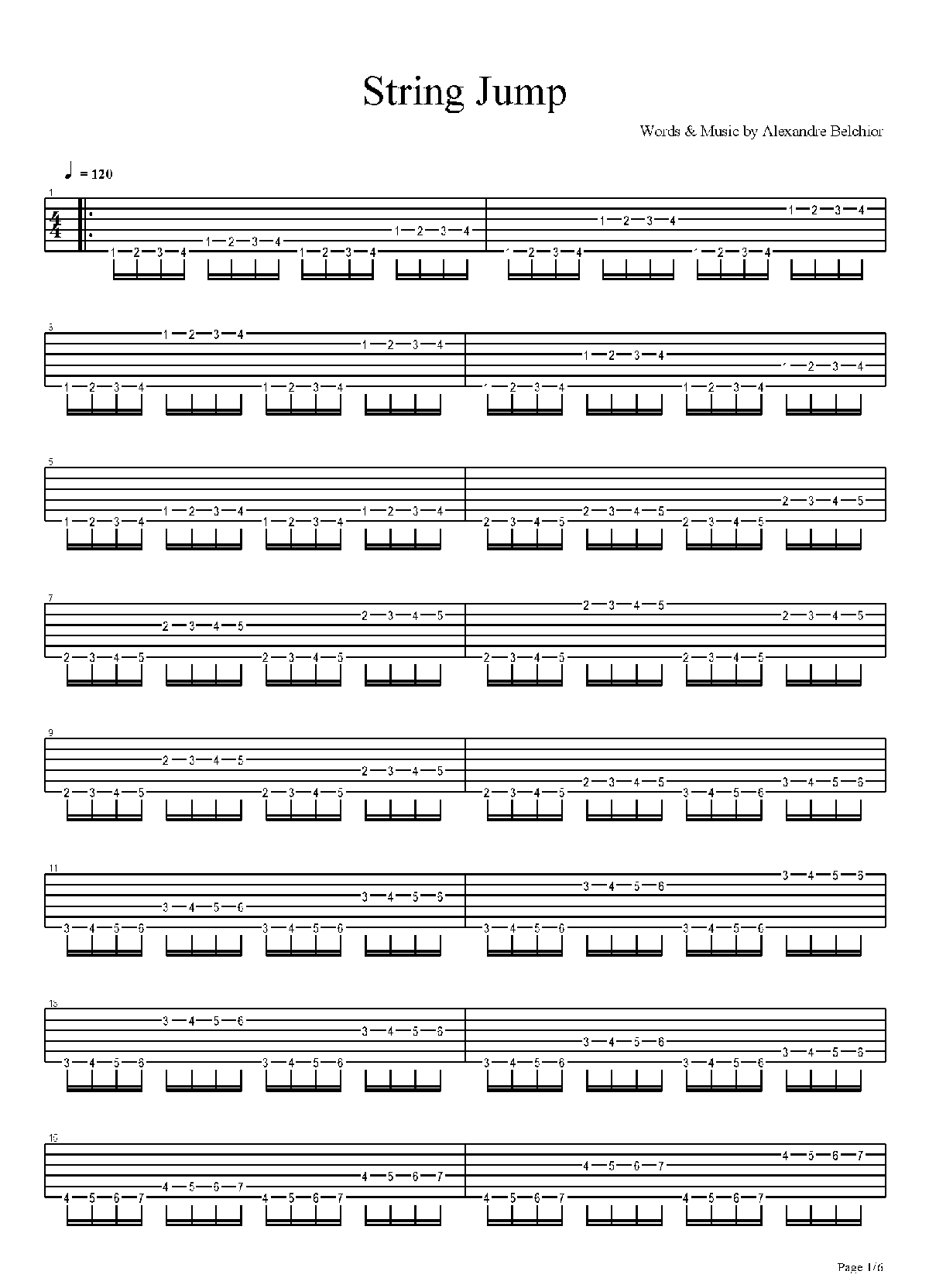 电吉他练习谱《Heavy Exercises - String Jump》简谱五线谱附歌词是飞鱼乐谱网于2017年04月01日 21:08:43整理更新,内容收录在电吉他乐谱栏目;飞鱼乐谱网免费分享专业、准确、规范、高清的电吉他乐谱简谱五线谱歌词等电子版资料,欢迎在线免费下载;飞鱼乐谱网无需注册会员,即可直接免费下载各类乐器学习相关资源。