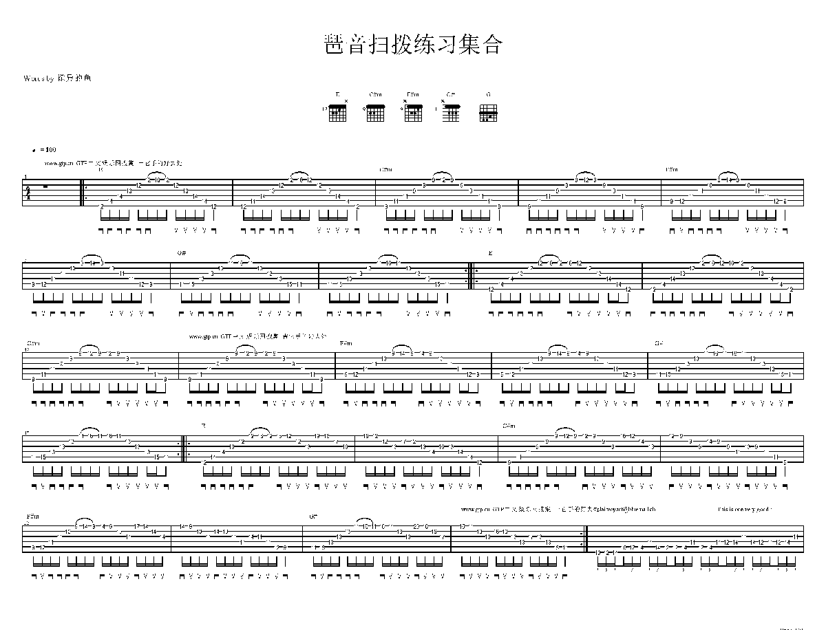 电吉他基本功练习曲谱《琶音练习》简谱五线谱附歌词是飞鱼乐谱网于2017年04月02日 11:22:05整理更新,内容收录在电吉他乐谱栏目;飞鱼乐谱网免费分享专业、准确、规范、高清的电吉他乐谱简谱五线谱歌词等电子版资料,欢迎在线免费下载;飞鱼乐谱网无需注册会员,即可直接免费下载各类乐器学习相关资源。