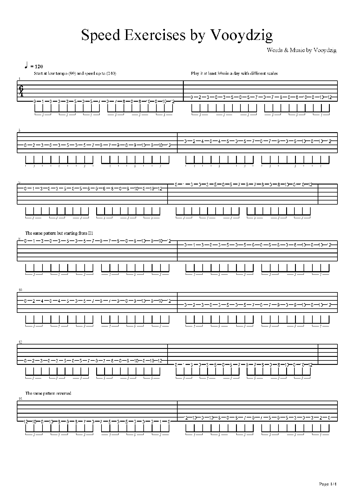 电吉他练习谱《Heavy Exercises - Speed Exercises》简谱五线谱附歌词是飞鱼乐谱网于2017年04月01日 21:07:45整理更新,内容收录在电吉他乐谱栏目;飞鱼乐谱网免费分享专业、准确、规范、高清的电吉他乐谱简谱五线谱歌词等电子版资料,欢迎在线免费下载;飞鱼乐谱网无需注册会员,即可直接免费下载各类乐器学习相关资源。
