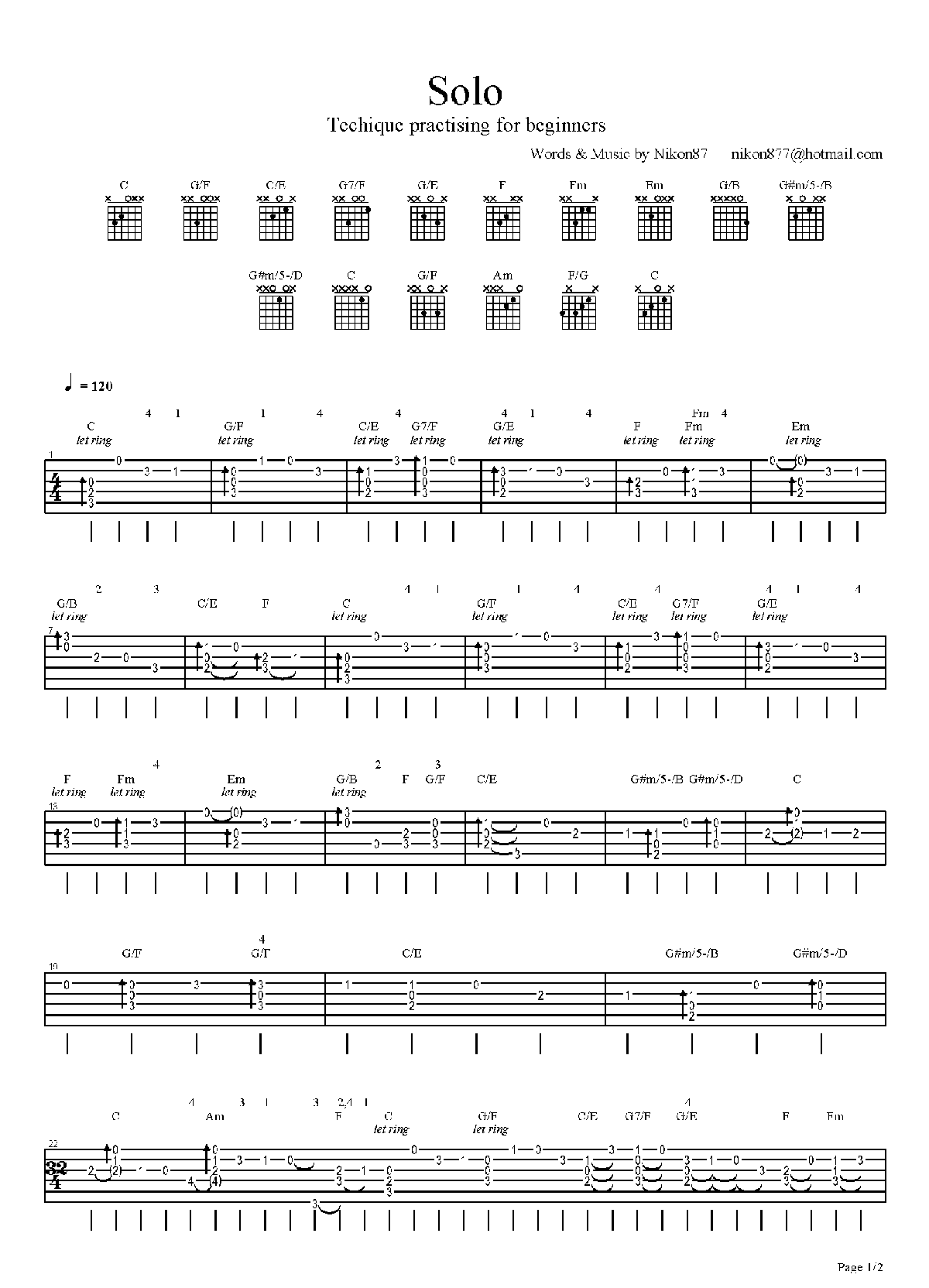 电吉他练习谱《Finger and Picking exercise - Solo》