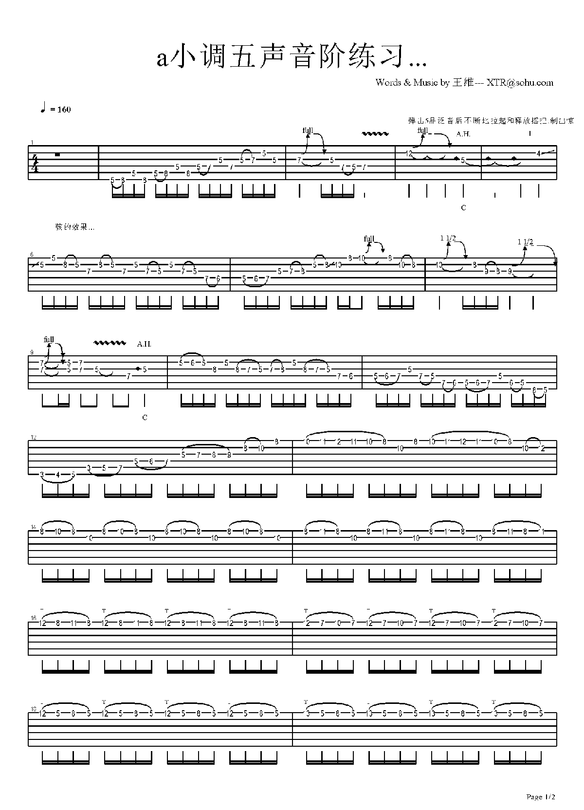 电吉他练习谱《A小调五声音阶练习》简谱五线谱附歌词是飞鱼乐谱网于2017年04月01日 17:08:38整理更新,内容收录在电吉他乐谱栏目;飞鱼乐谱网免费分享专业、准确、规范、高清的电吉他乐谱简谱五线谱歌词等电子版资料,欢迎在线免费下载;飞鱼乐谱网无需注册会员,即可直接免费下载各类乐器学习相关资源。