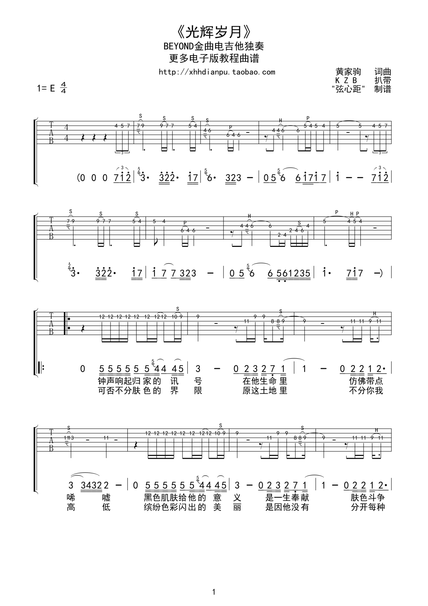 光辉岁月吉他谱 - beyond - 电吉他谱