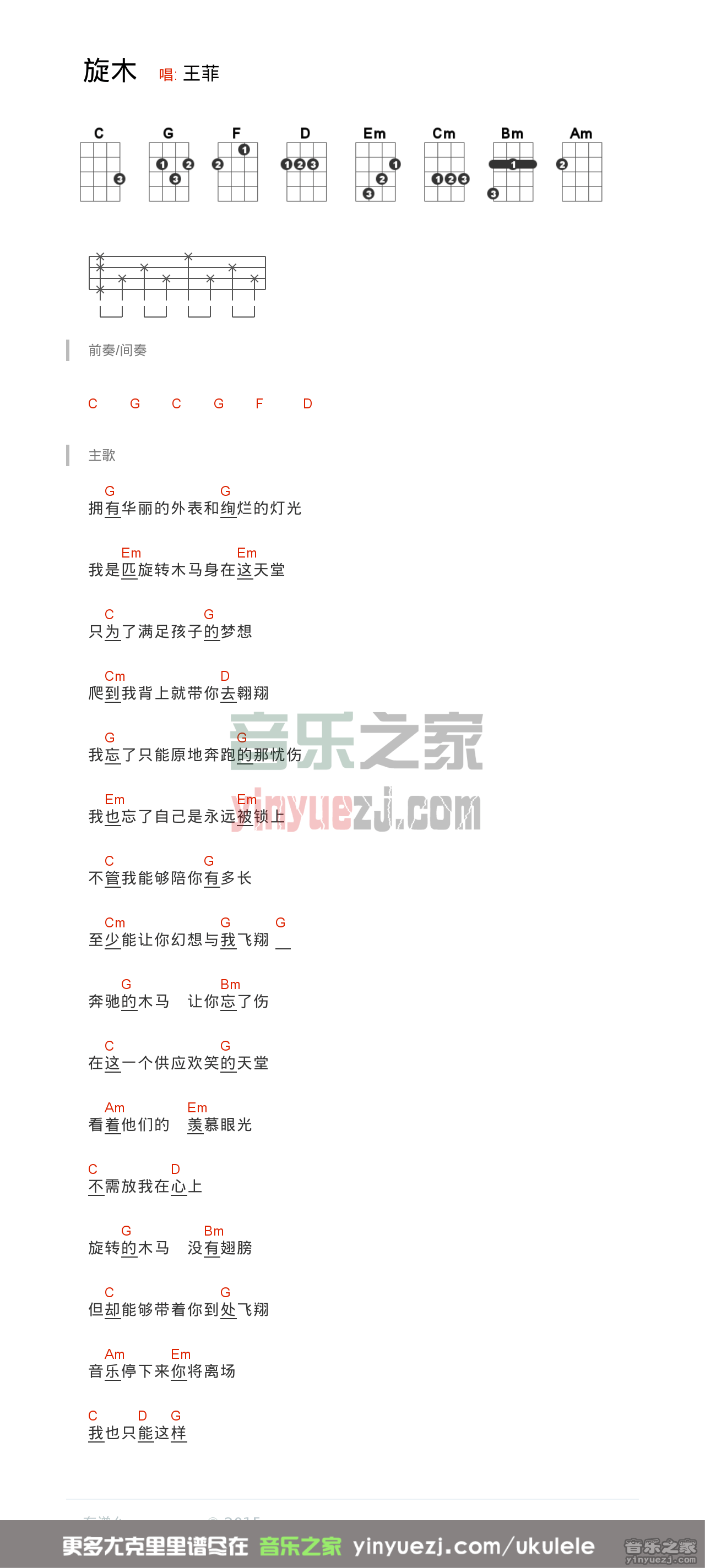 旋木尤克里里谱_王菲_D调尤克里里弹唱谱
